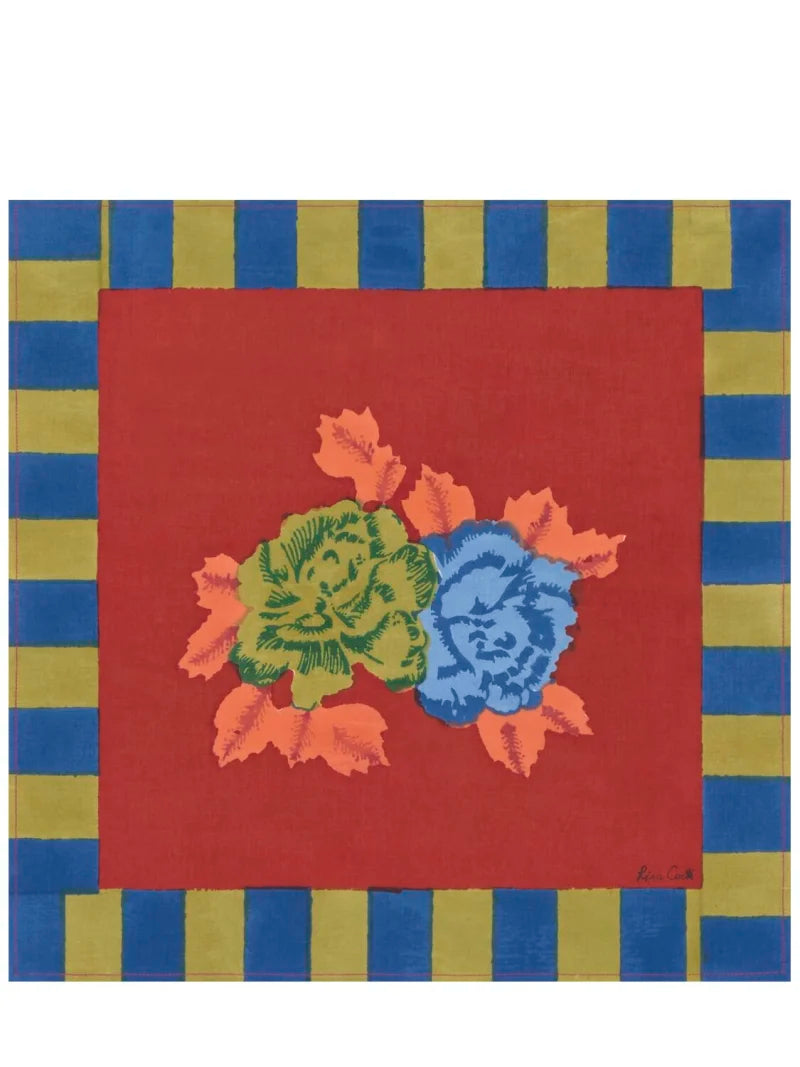 Block printed by hand in India, Lisa Corti's hand-stitched 100% cotton napkins can be mixed or matched with a plain under tablecloth to add a charming touch of print to any meal, or layered with a block printed tablecloth for a rich, maximalist effect.