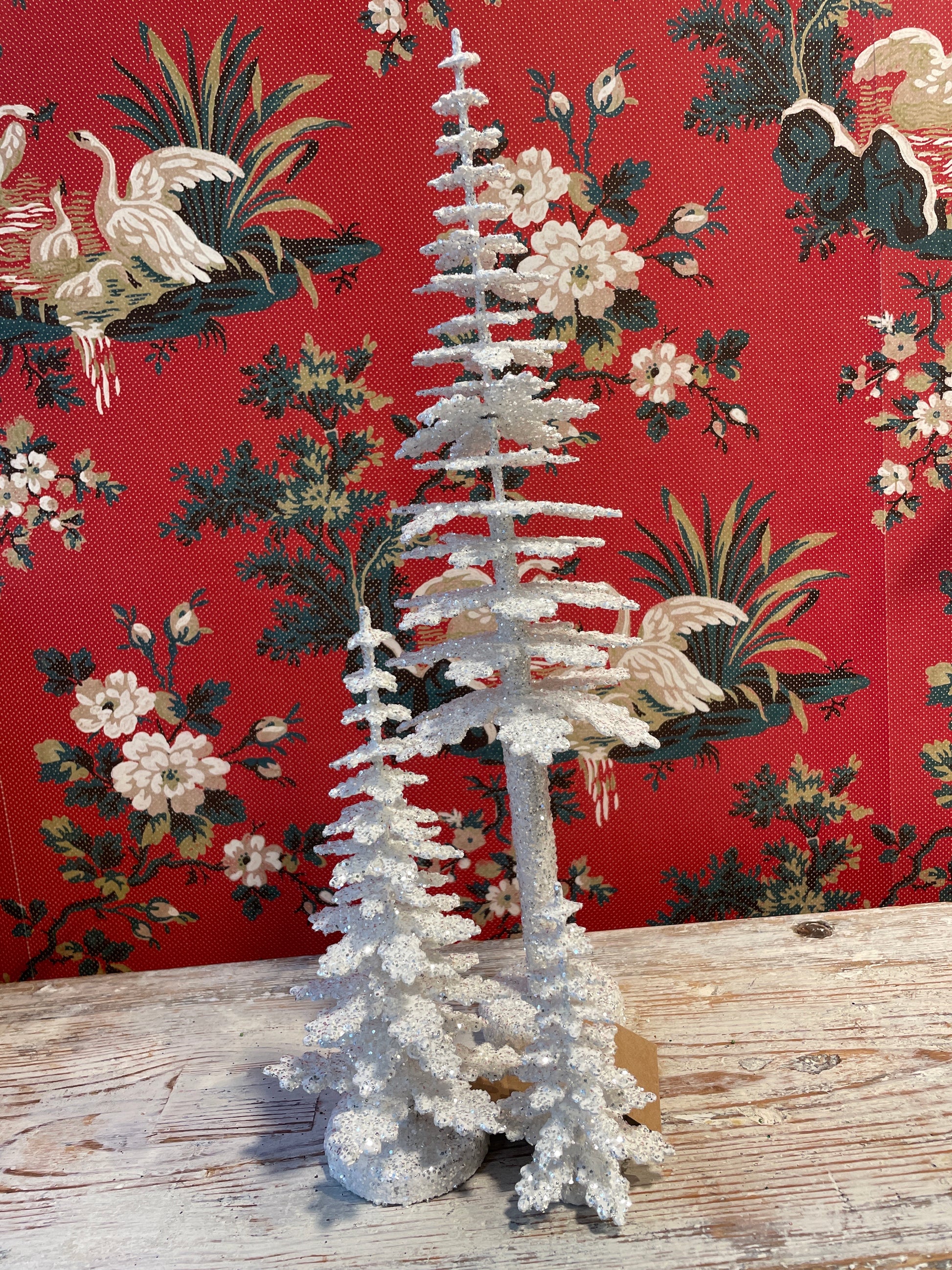 Handmade in Bavaria, these glittered cardboard trees bring old‑world shimmer to winter tables and mantels. Each form is cut and layered by hand, edged and dusted with fine glass‑glitter for a candlelit sparkle. Beautiful on their own, spectacular styled in clusters; expect subtle variations—proof of the hand at work. Make your home shine this holiday season with our Glitter Christmas Trees.
