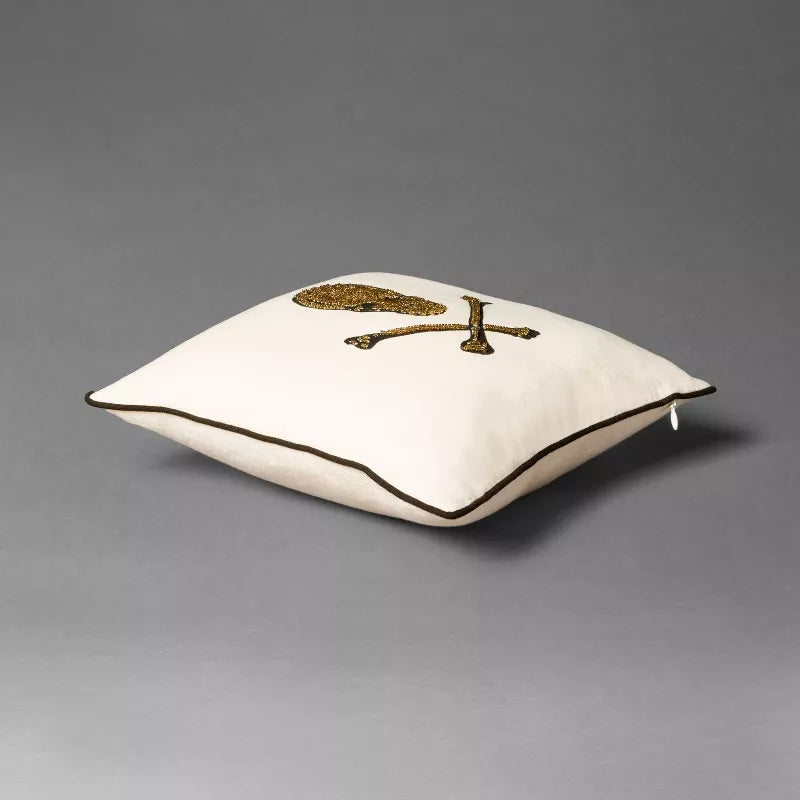 Beaded Skull and Crossbones Square Throw Pillow - John Derian Company