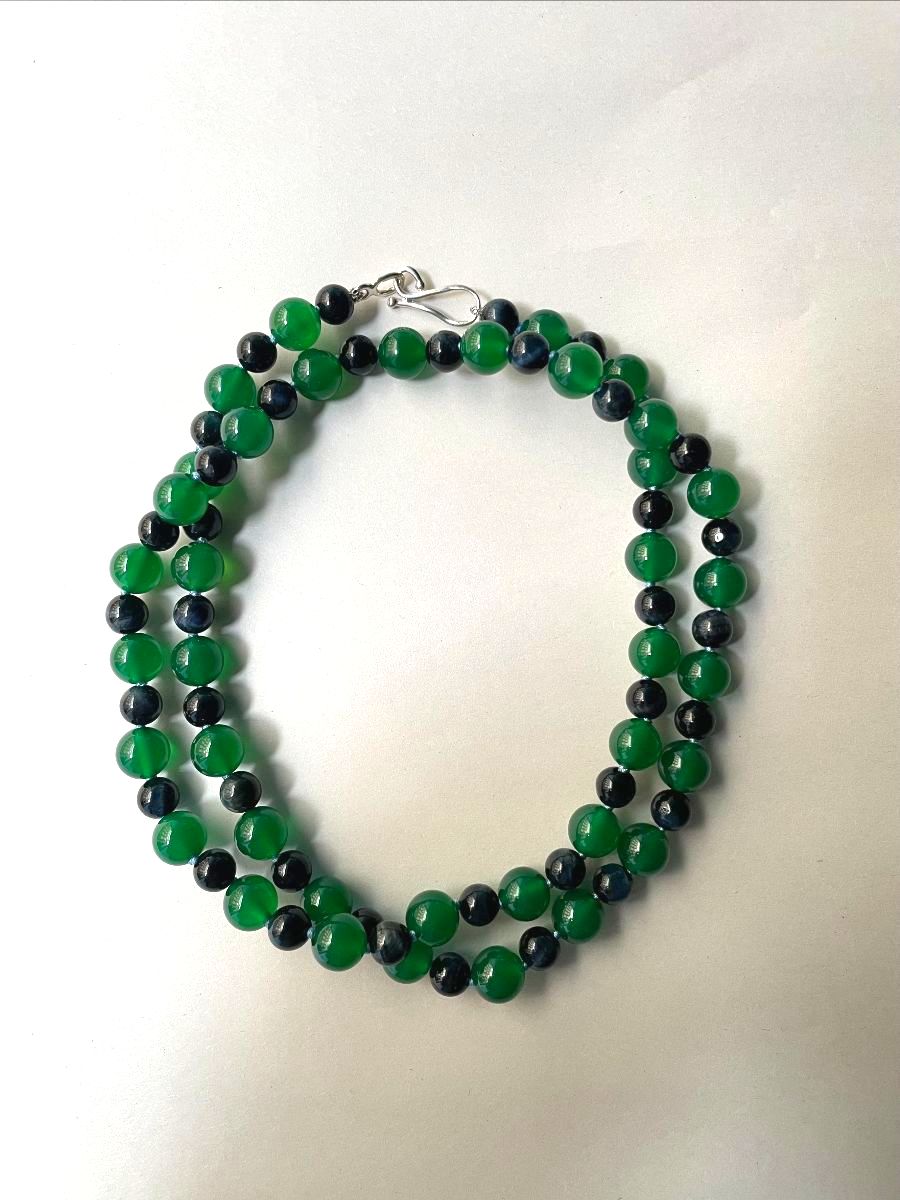 Eagle’s Eye and Dark Green Agate Bead Necklace | Mikkel Brøgger