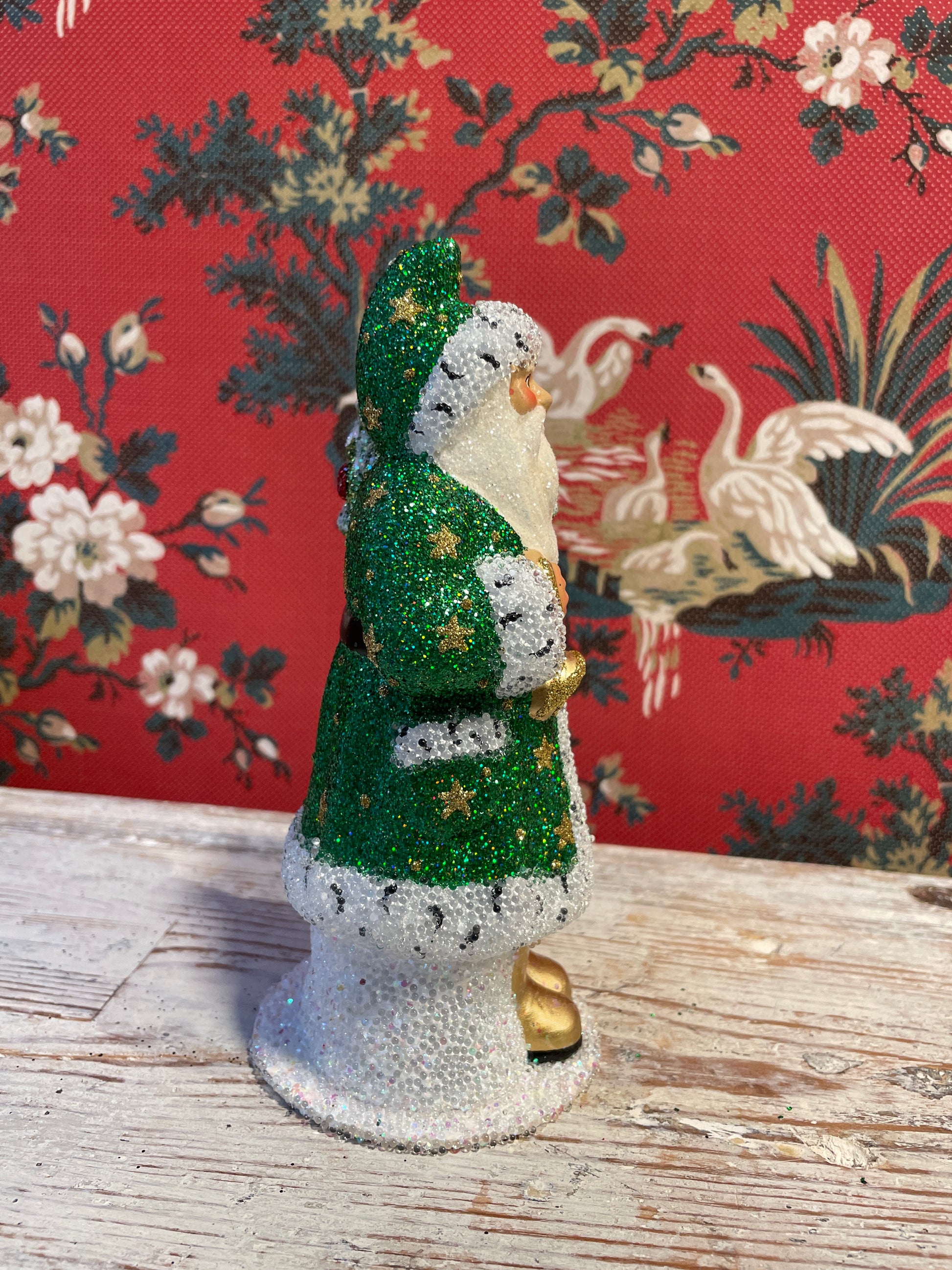 Green Beaded Glittered Gold Stars Santa | Ino Schaller