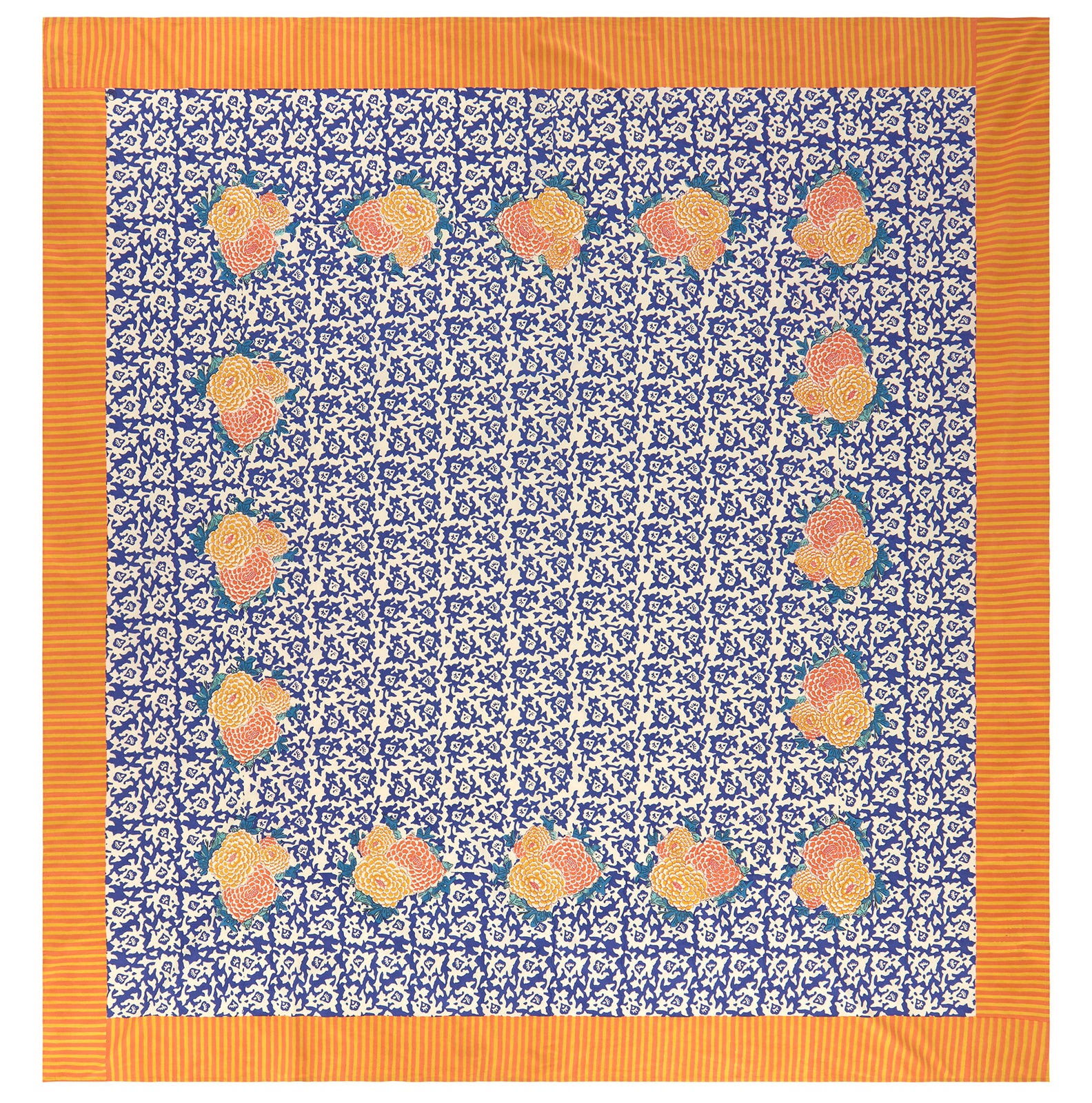 Arabesque Corolla Blue Natural Cotton Cloth 220 x 270 | Lisa Corti