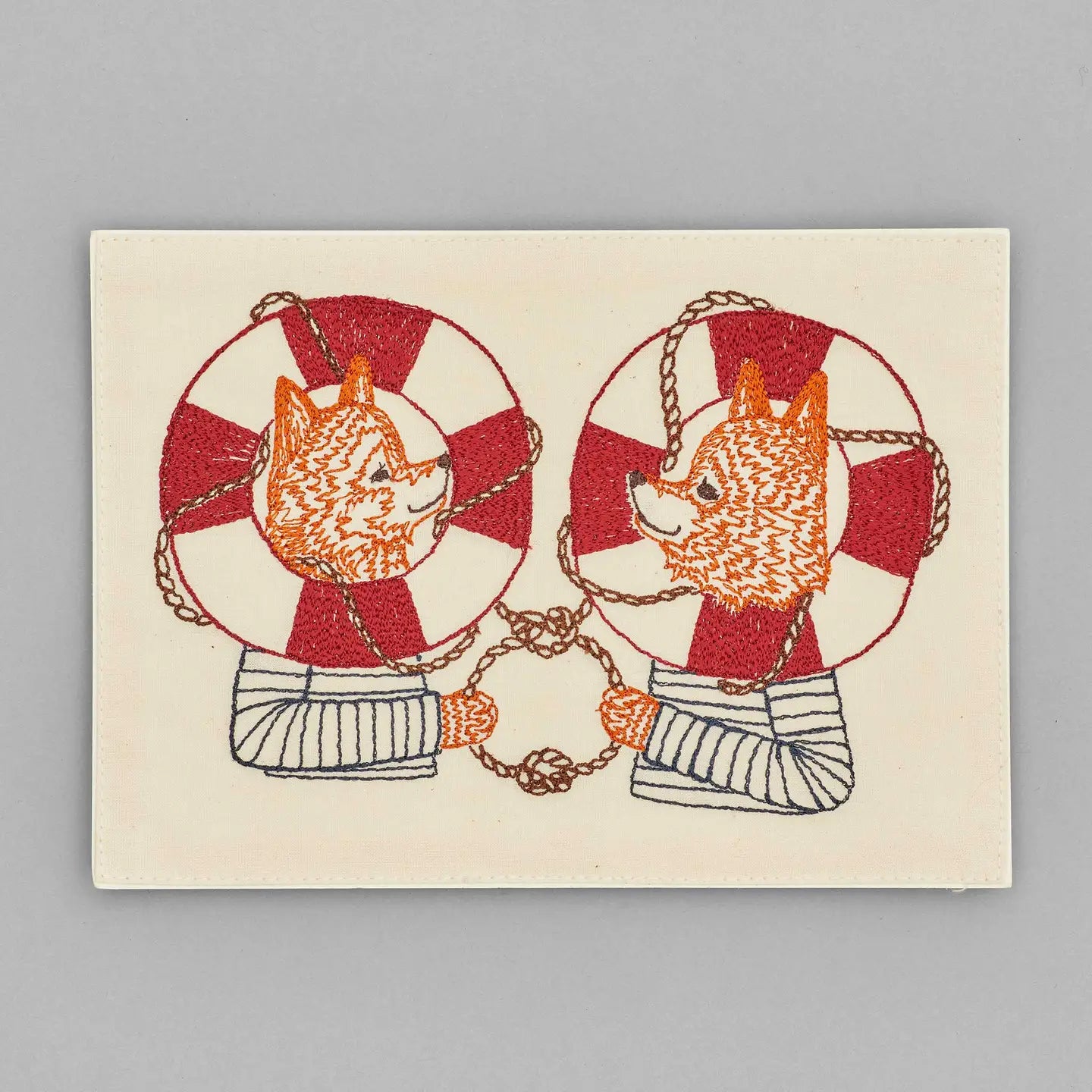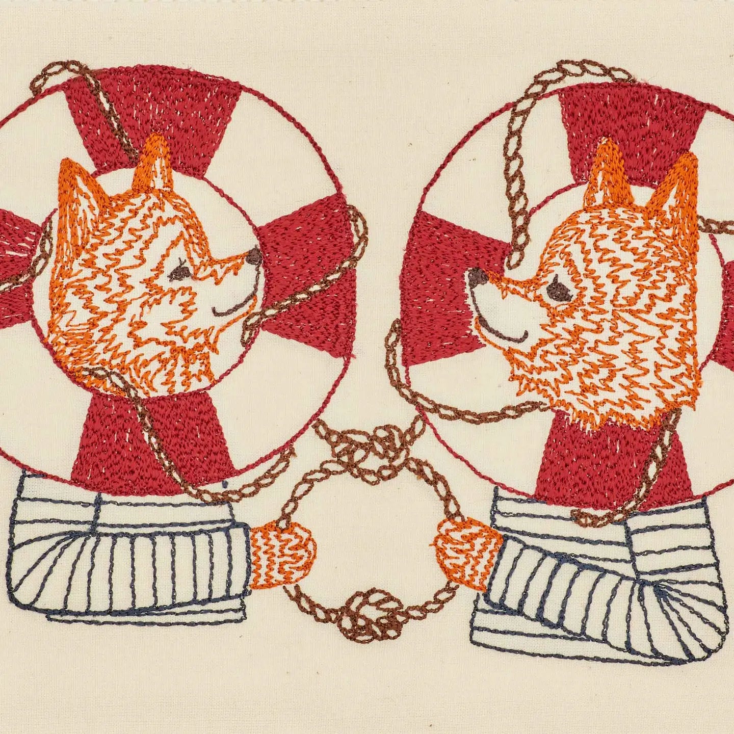 These seafaring fox friends lift each other up with brightly embroidered lifesavers complete with a nautical knot. Send to your first mate or display in a frame.