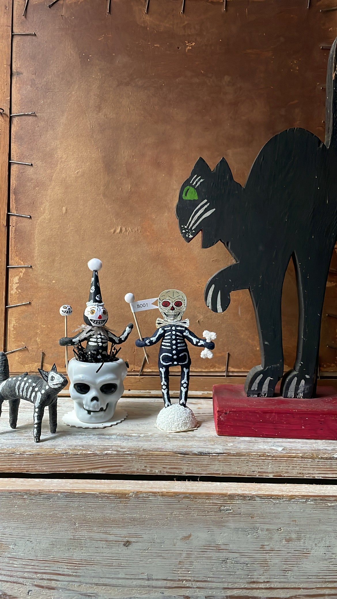 X-Ray Skeleton Cat Ornament/Figure | Vintage by Crystal Spun Cotton Ornament