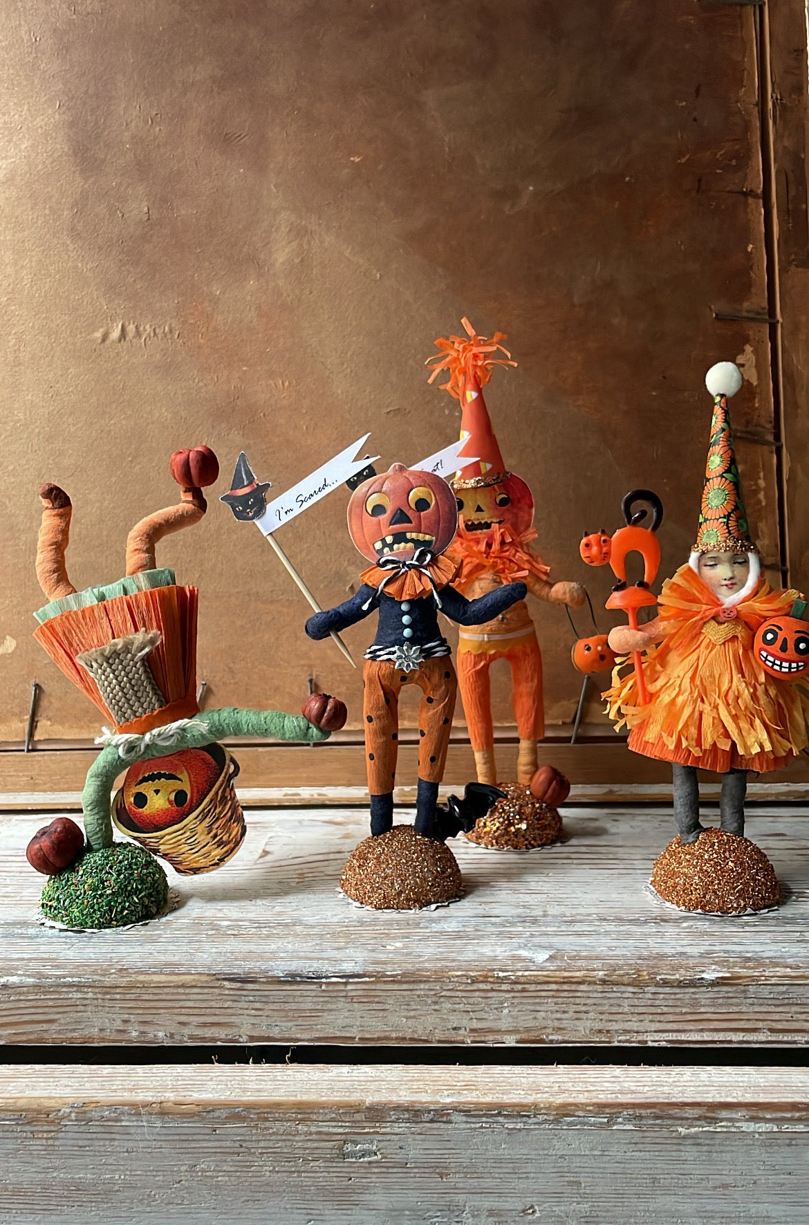 Handstand Pumpkin Gal Figure | Vintage by Crystal Spun Cotton Ornament