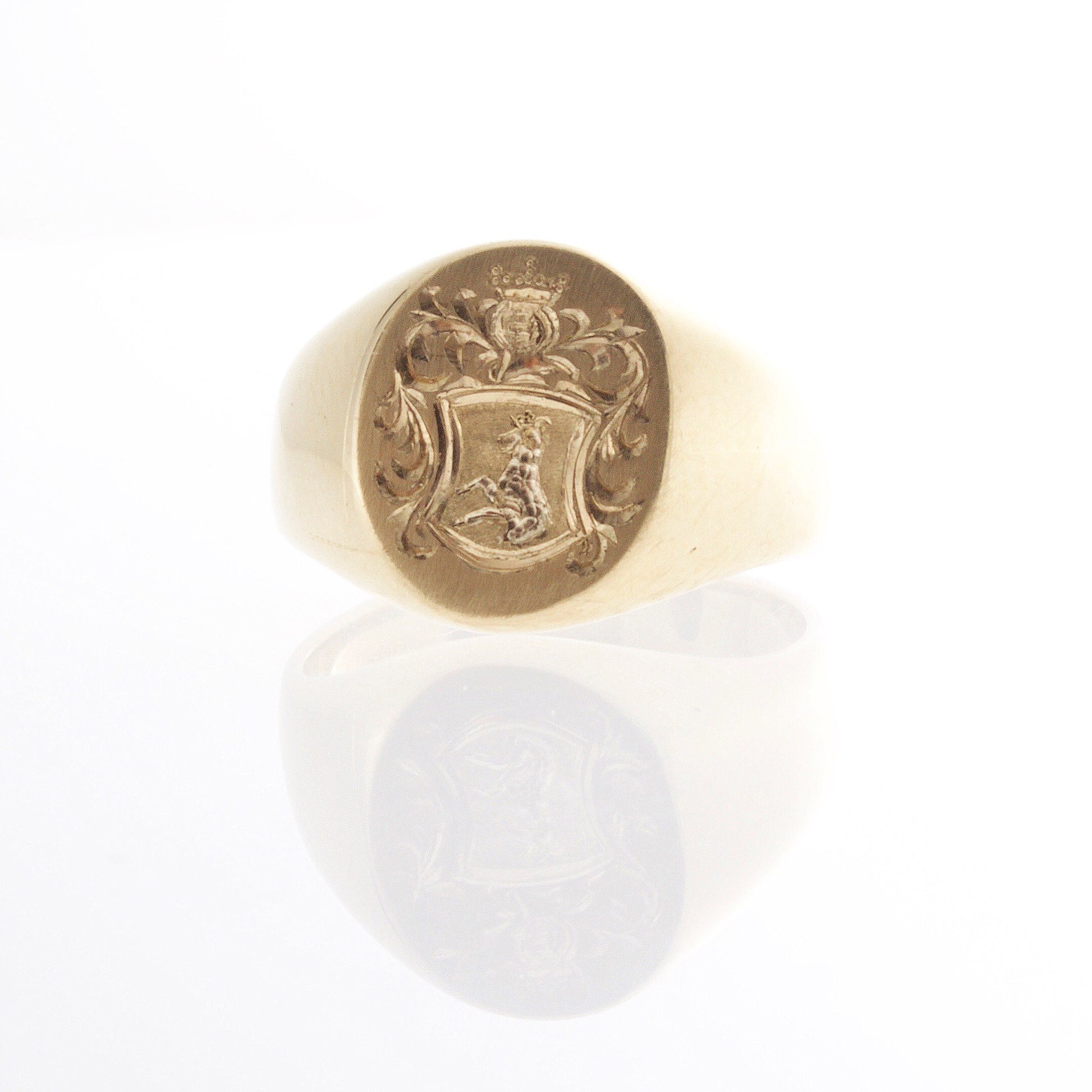 The top is oval, measuring 10mm x 13mm, tapered ring shank, fashioned in yellow gold, finish polished.