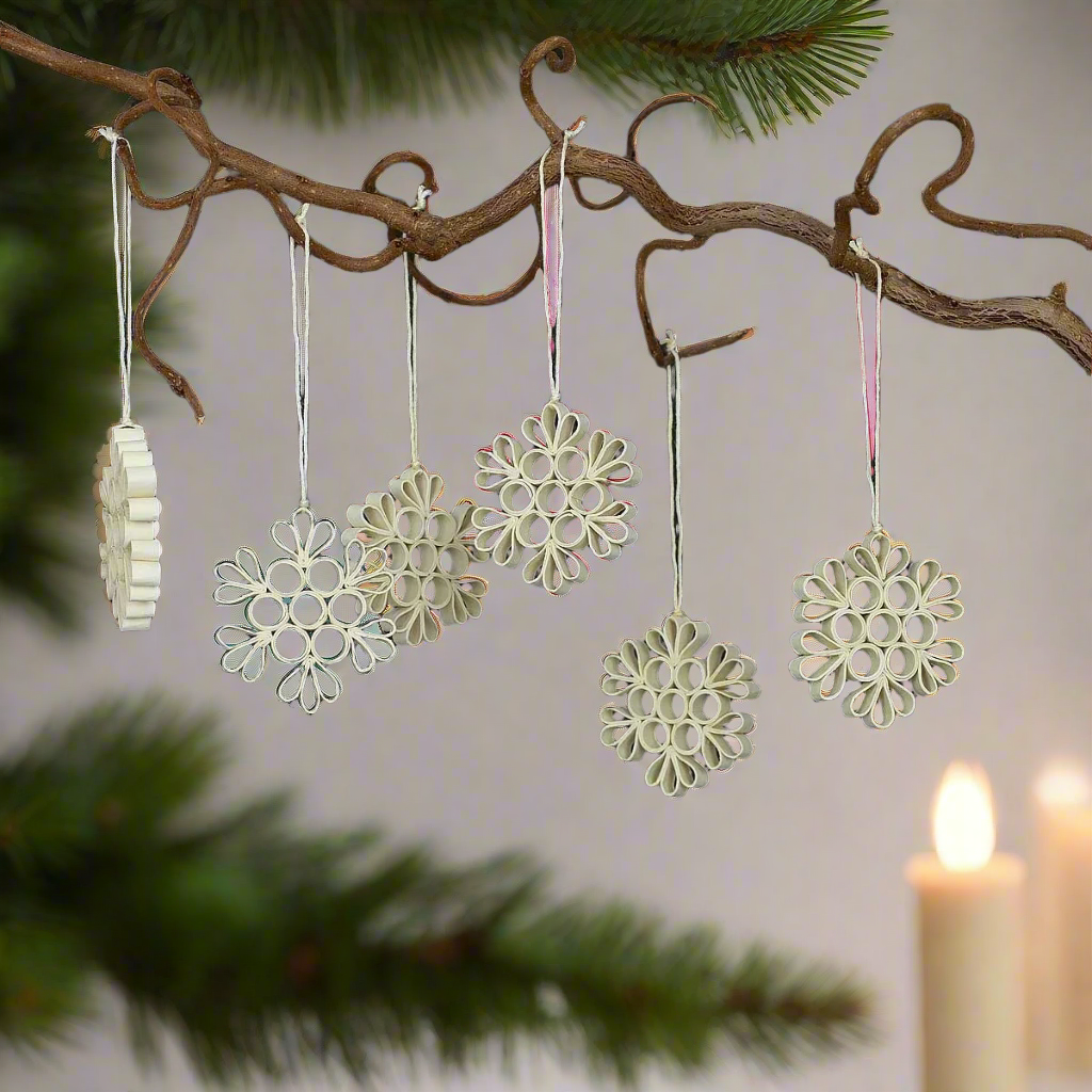 Deck the halls with these handmade Swedish designed marvels! Six spins of natural quilled snowflakes for your Christmas ornament collection!