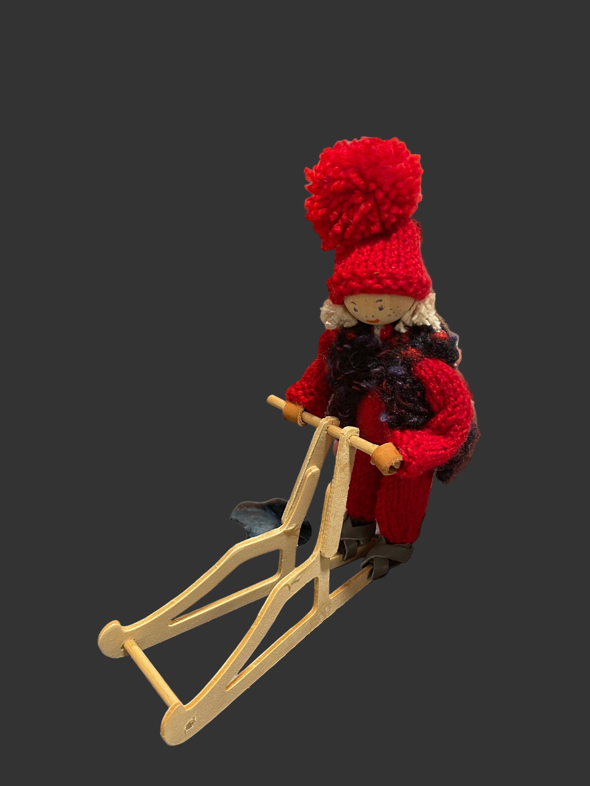 Swedish Wool Tomte on Kicksled (Red)