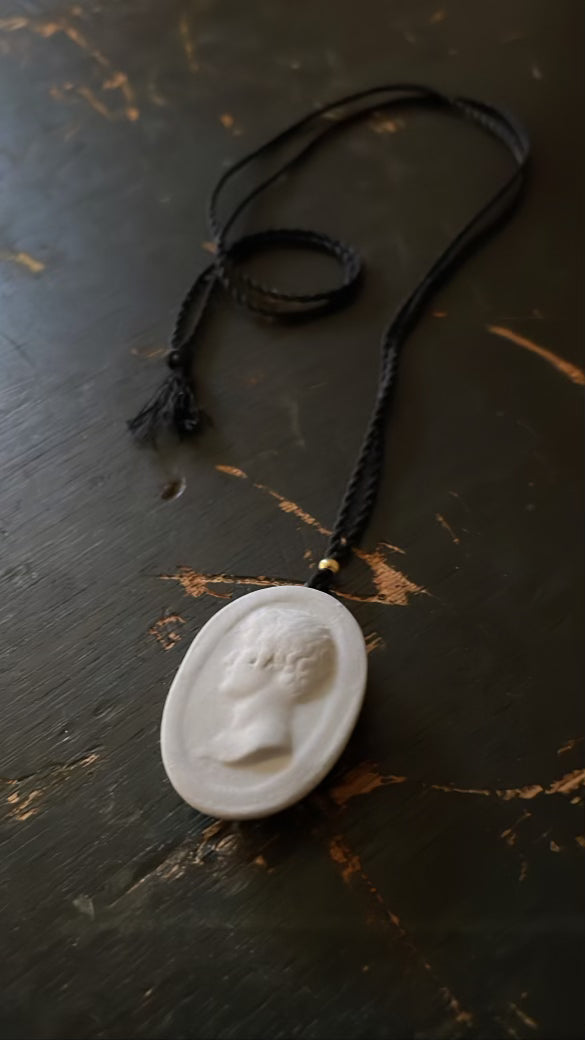 A timeless expression of craftsmanship and antiquity, this porcelain cameo pendant by Marcie McGoldrick is individually handcrafted using molds made from vintage Grand Tour plaster casts. Each piece is tinted by hand in Marcie’s studio, resulting in delicate variations in hue and tone that make every pendant one-of-a-kind.