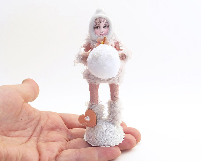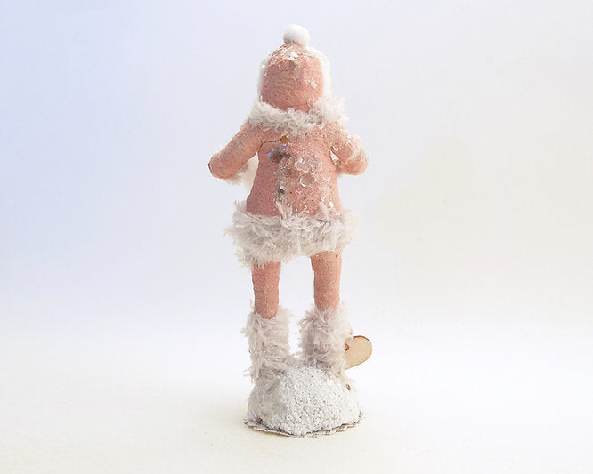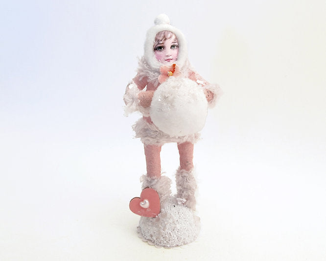 Fuzzy Warm Girl W/ Snowball Figure | Vintage by Crystal Spun Cotton Ornament | Vintage by Crystal Spun Cotton Ornament