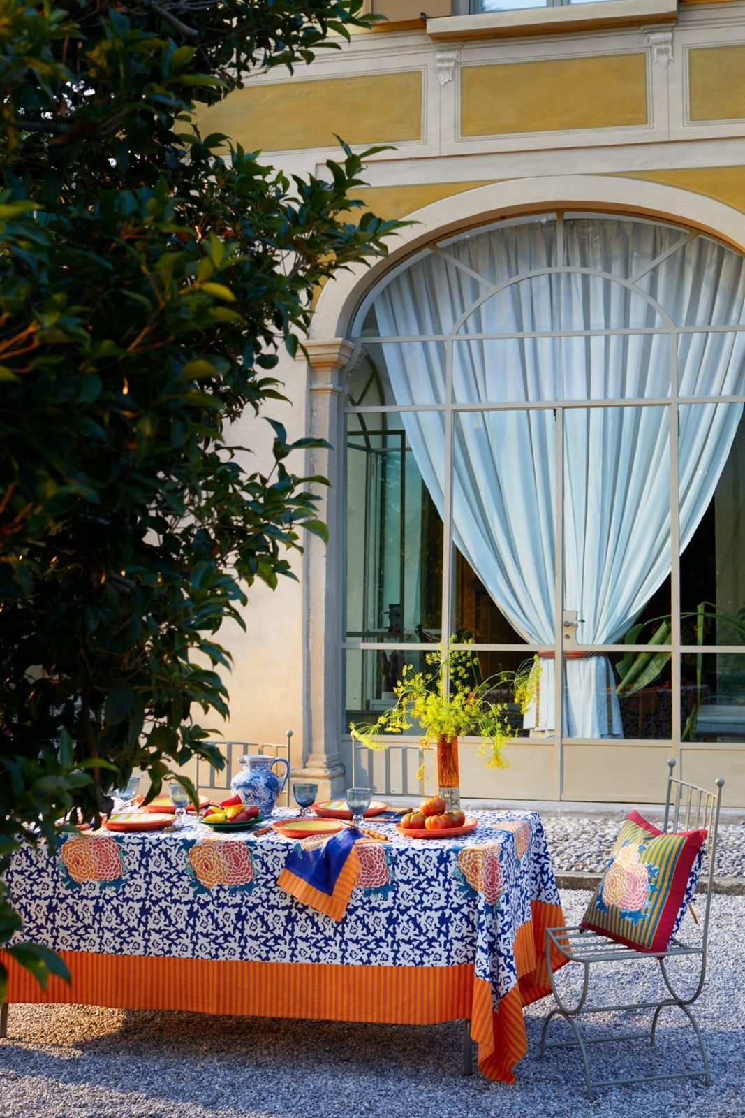 True to Italian tradition, mezzeri are cotton cloths that can be used both decoratively and practically throughout your home as well as in outdoor spaces. Incredibly versatile, this larger mezzero can be used on a dinner table for four, as a centrepiece for a larger party or in any outdoor setting, and will always add a personalized touch of color and style to any space or event.