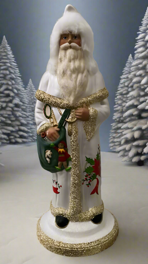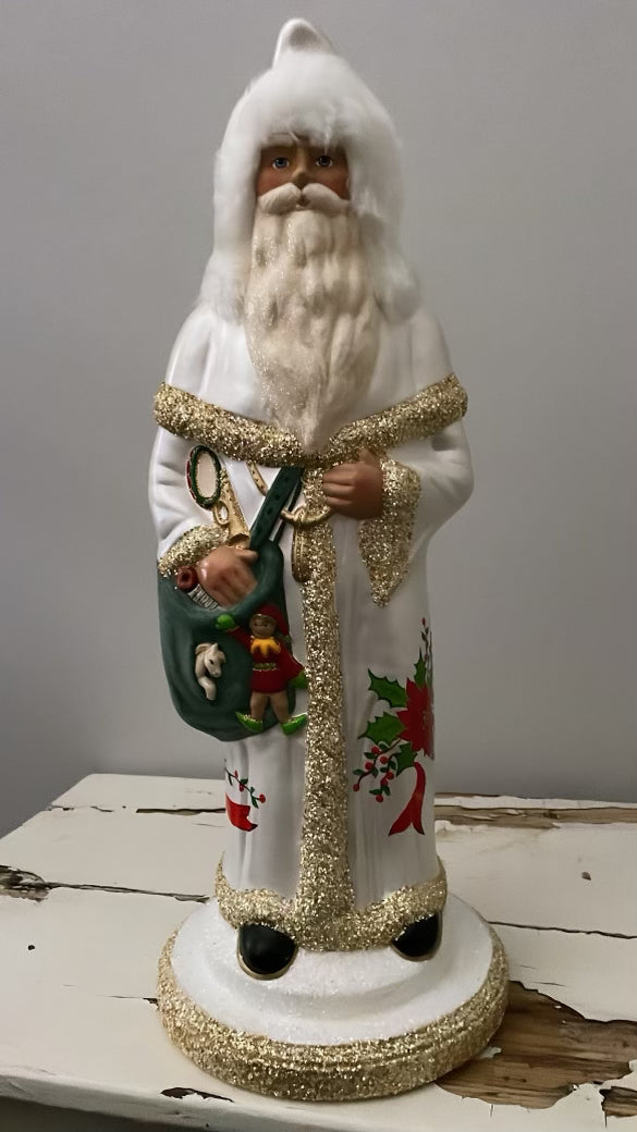 Santa no. 3 - Brilliant White with Gold Beaded Trim, Sack of Toys and Hand Painted Coat | Ino Schaller
