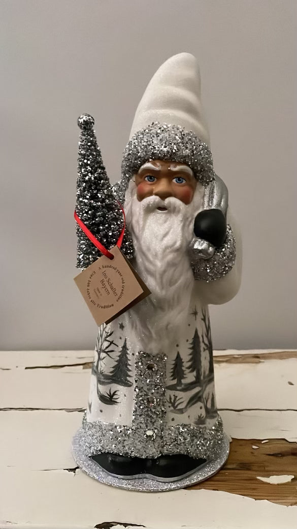 Santa no. 6 - White/Blue Beaded Coat with Hand Painted Forest Motif | Ino Schaller