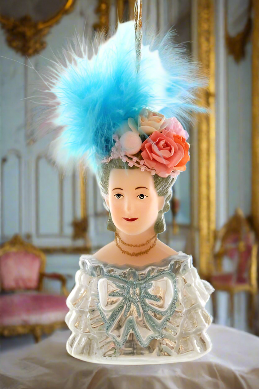 Parisian-inspired ornaments: Eiffel Tower, patisserie, chateaux, blue and white faience. Glass and...