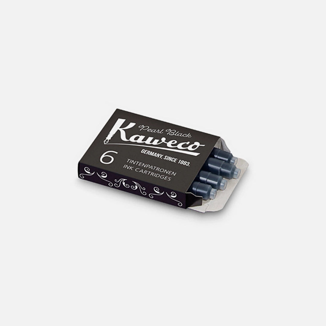Comes in a box of 6 black fountain pen cartridge. Refillable with Kaweco fountain pen cartridges.