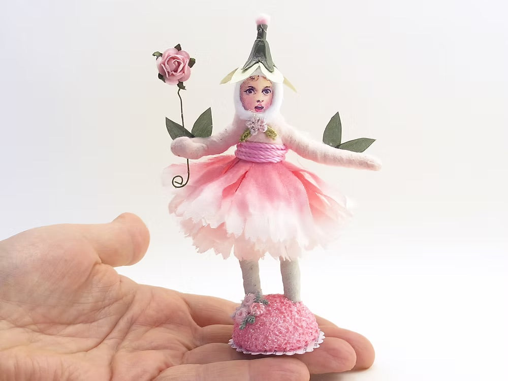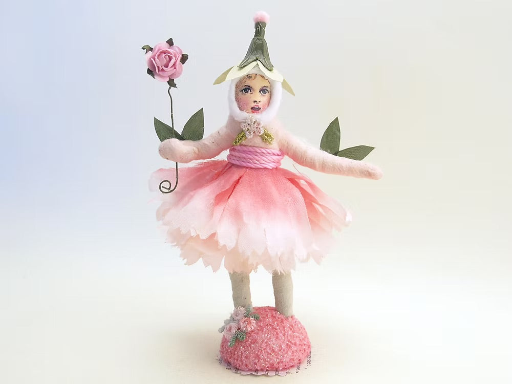 Pink Rose Petal Girl | Vintage by Crystal Spun Cotton Ornament