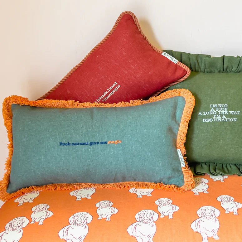 Discover the perfect blend of timeless elegance and contemporary flair with the Sophie Cushion in Blue/Green. This cushion features a 1.5 cm decorative trim, adding a touch of personality to the entire pillow. NojiNoji products are known for their attention to detail, and one standout detail is the carefully chosen color of the zipper.