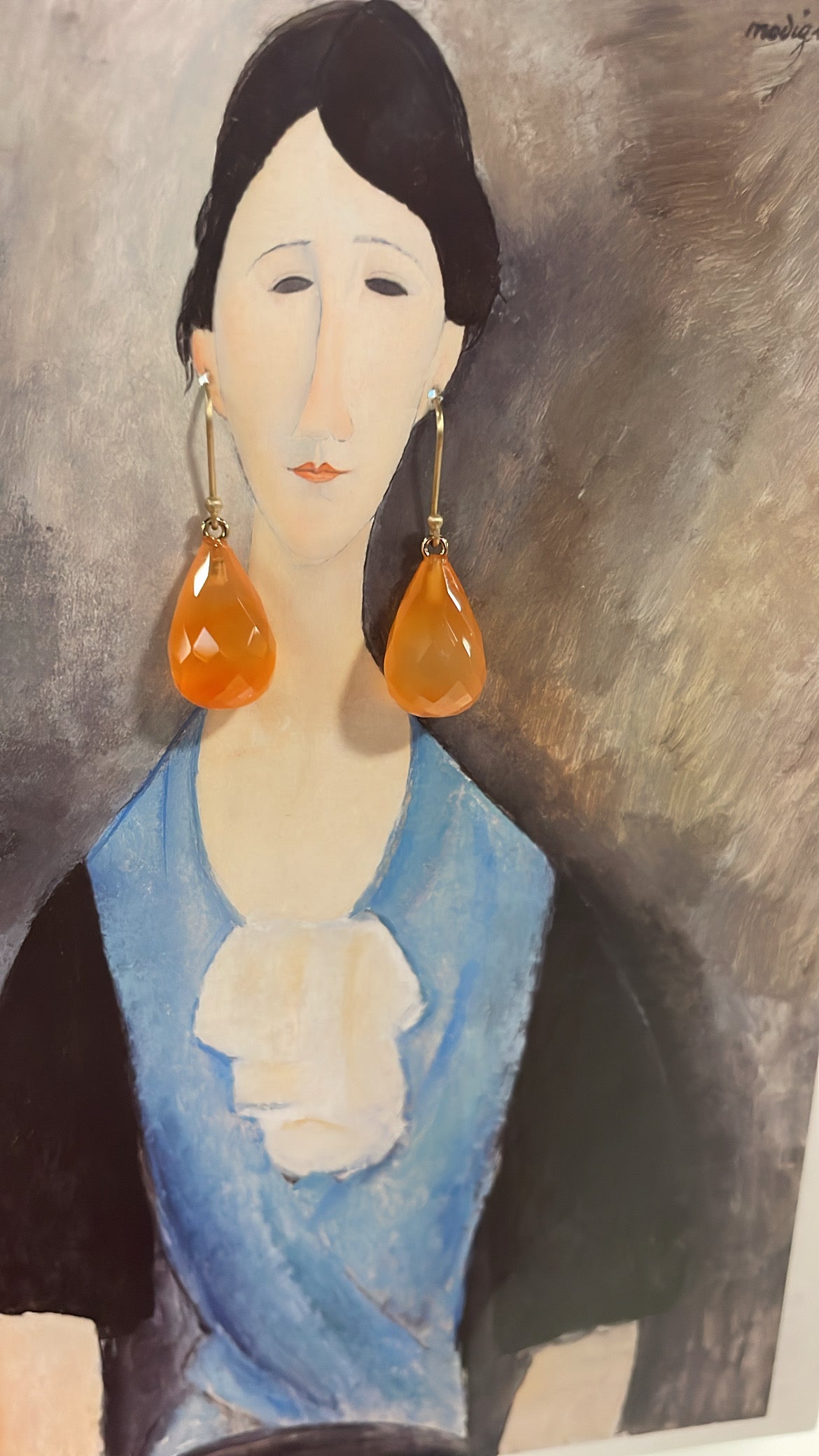 Facetted Gemstone and Gold Earrings, dangling, with handmade ear wires, contemporary, unique hand-cut gemstones.