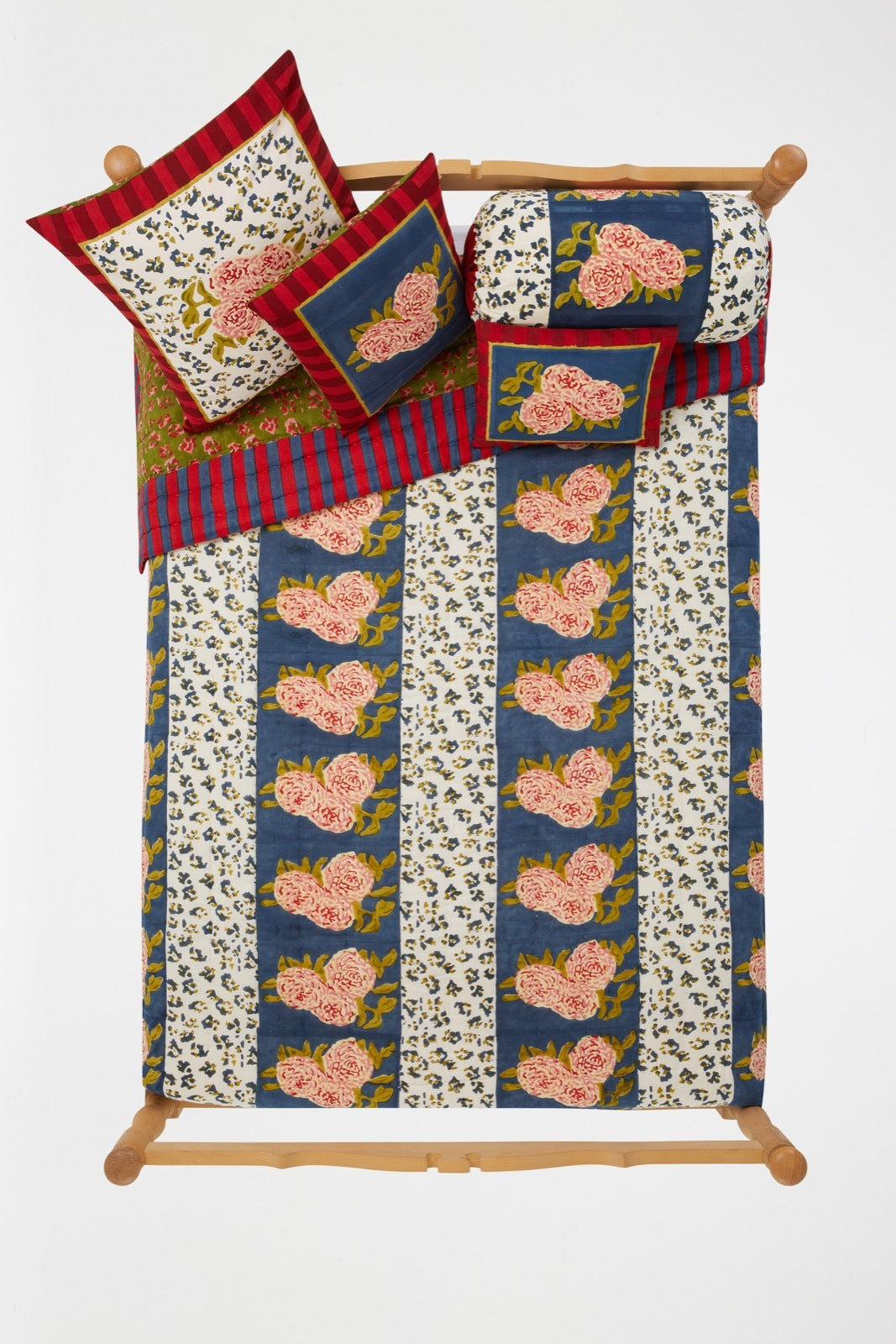 A cushion can change the mood of an entire room, and a handcrafted blockprint bolster cushion in cotton all the more so.