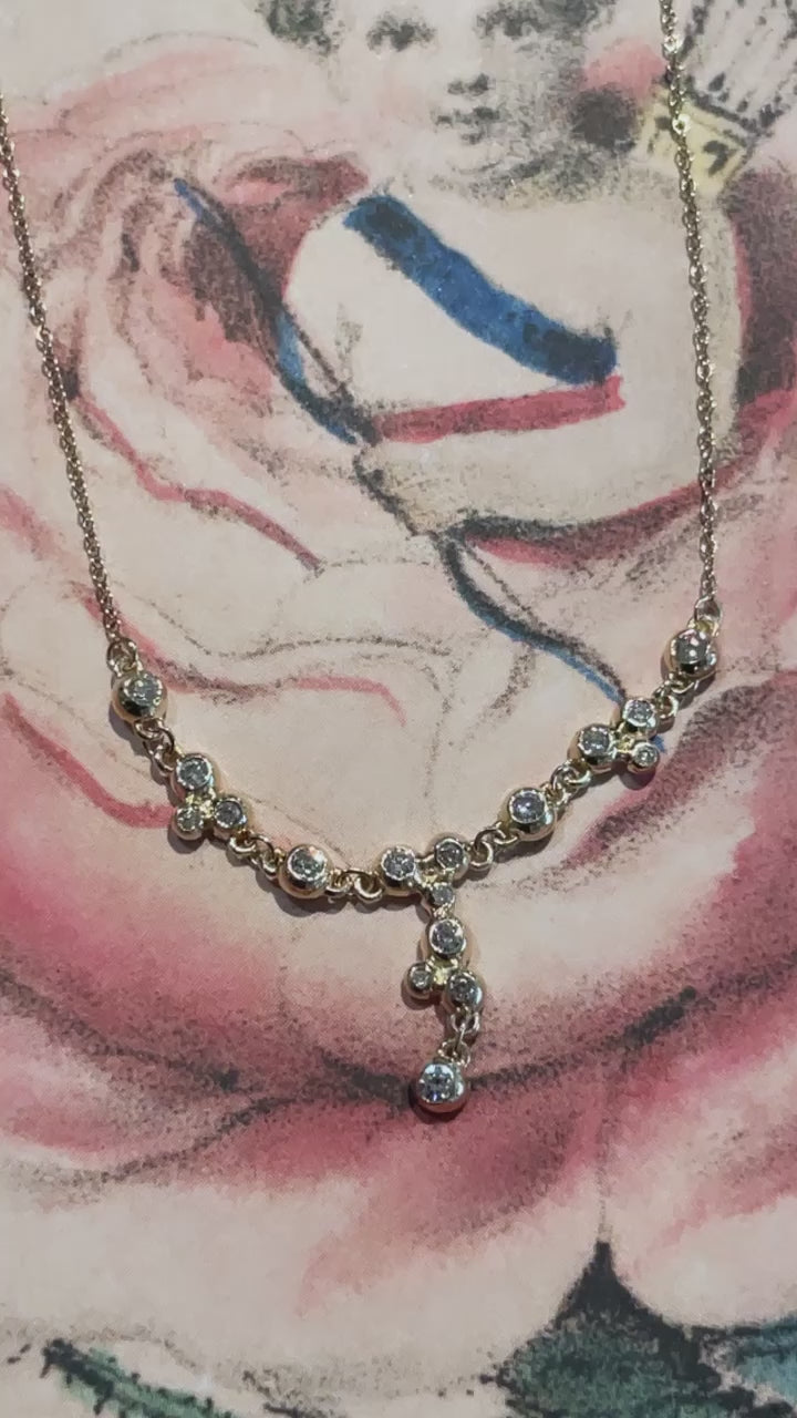 Sissi Necklace is composed by nine yellow gold bubble links and adorned by 17 round brilliant cut white Diamonds in various sizes, weighing approximately 0.38 carat weight, burnished in bubble links, suspended from delicate cable chain.