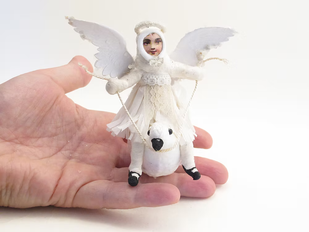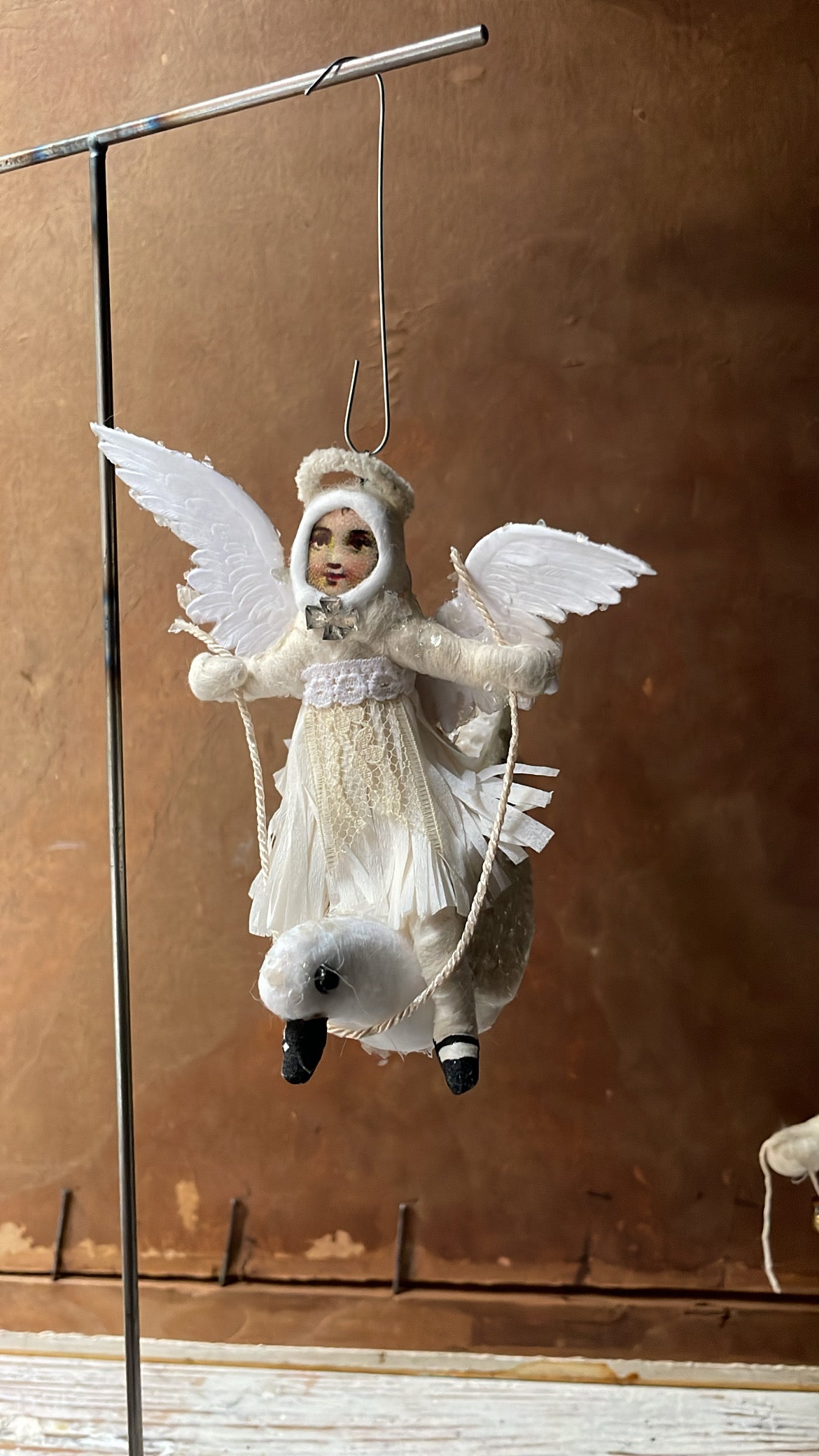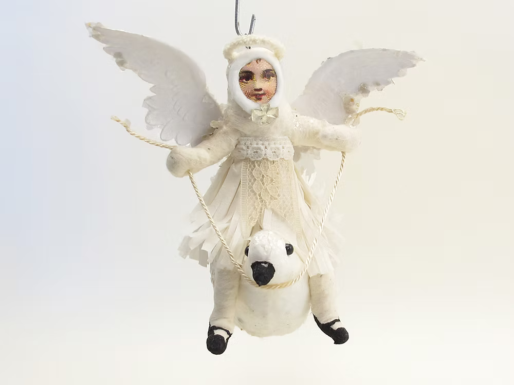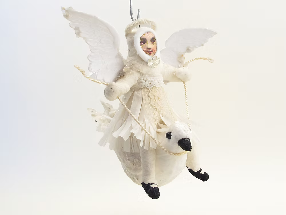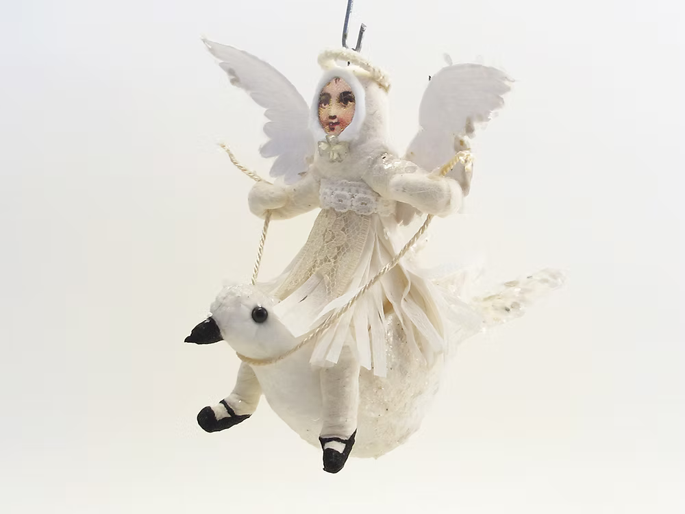 Angel Dove Rider Ornament | Vintage by Crystal Spun Cotton Ornament