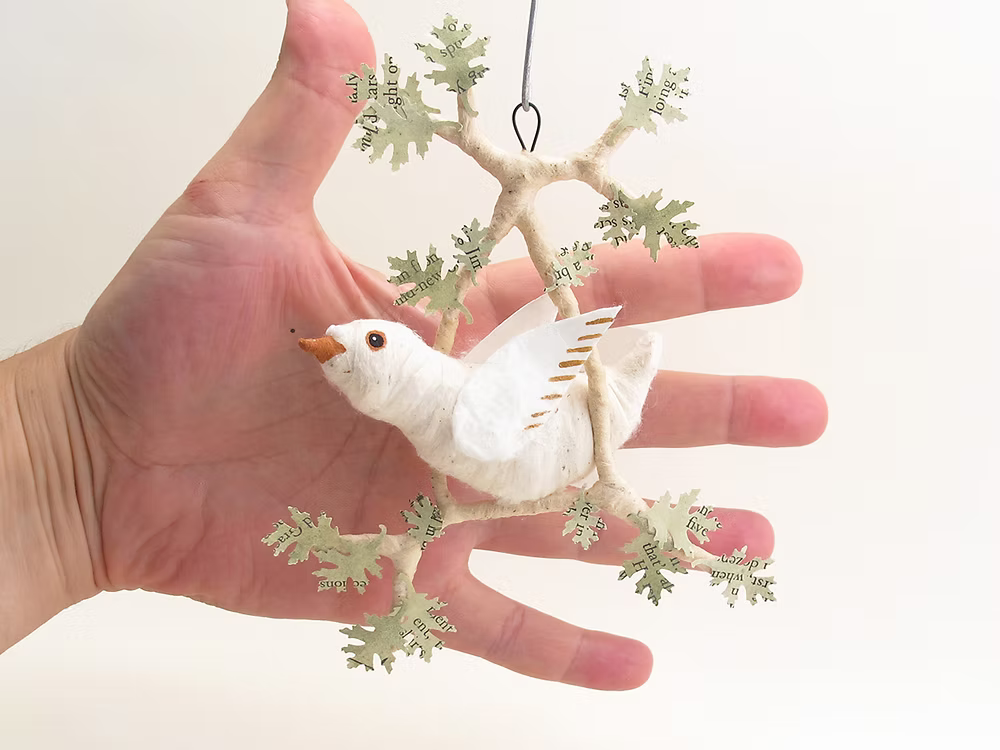 Bird Perch Ornament | Vintage by Crystal Spun Cotton Ornament
