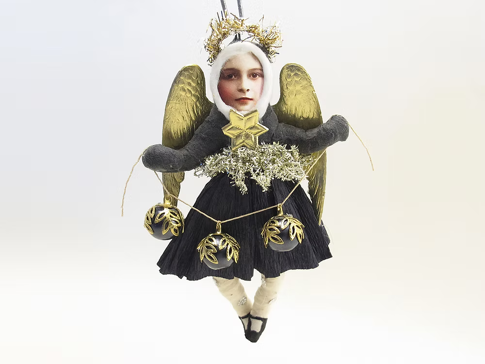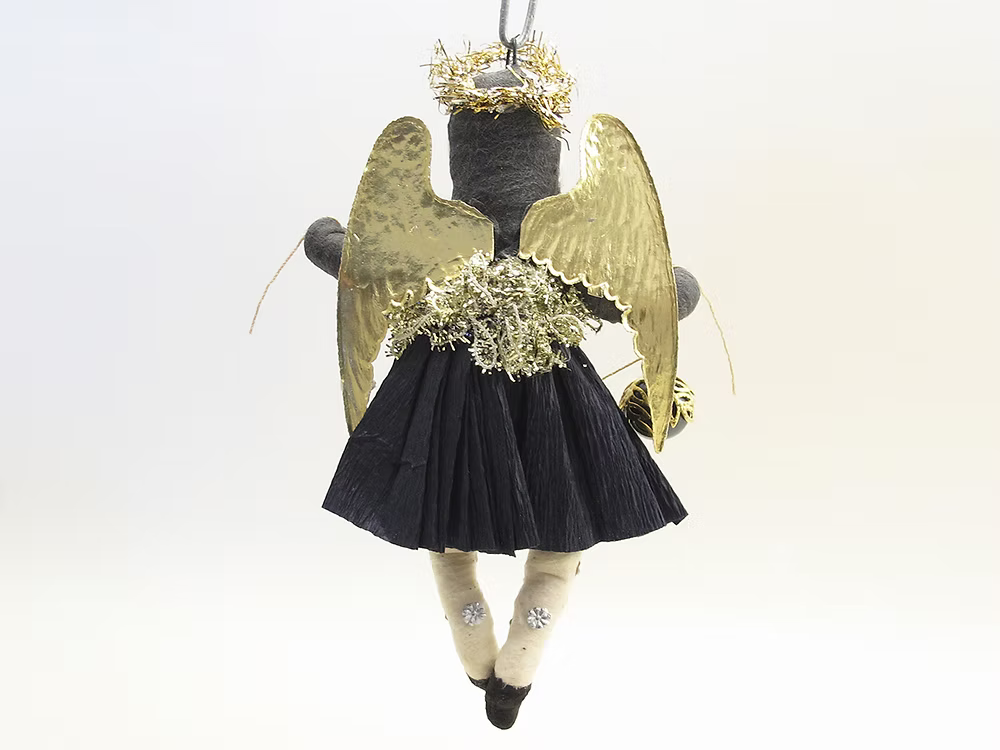 Black Dress Angel Ornament | Vintage by Crystal Spun Cotton Ornament