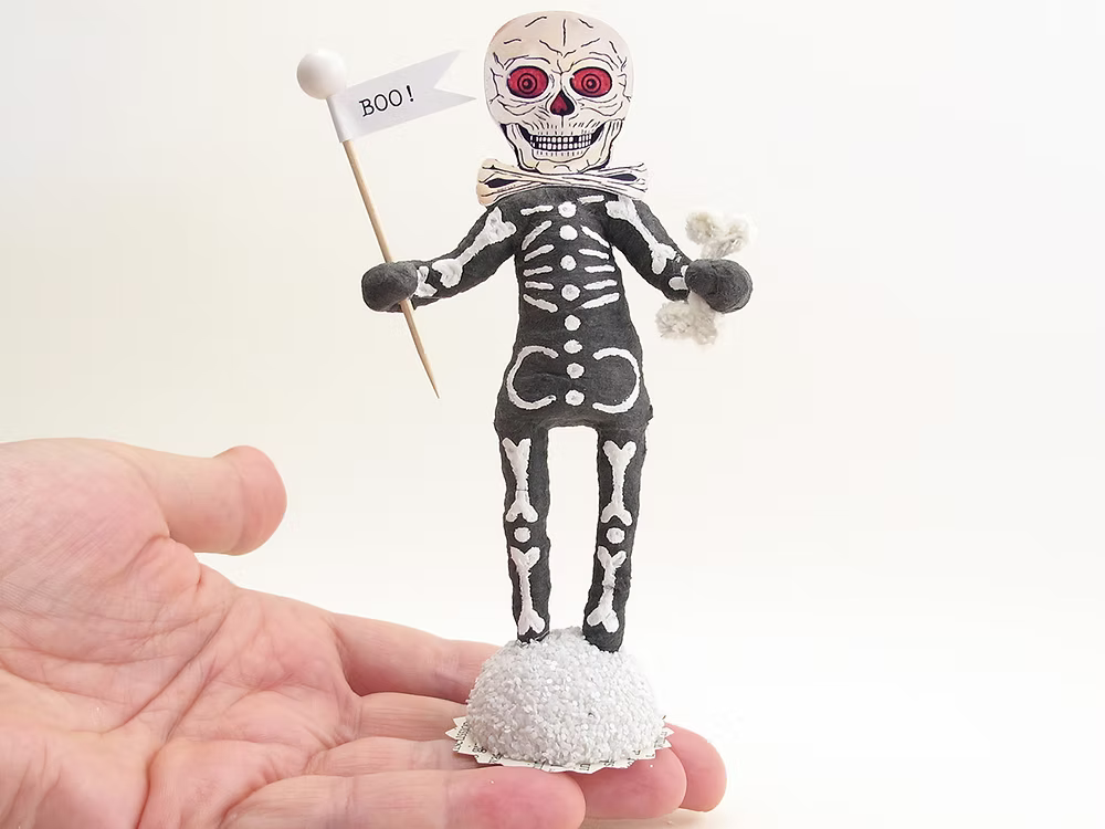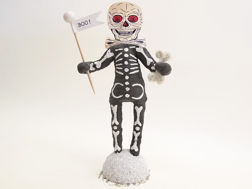 "Boo" Skeleton Figure | Vintage by Crystal Spun Cotton Ornament
