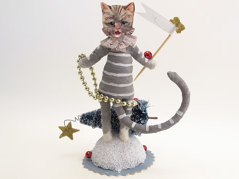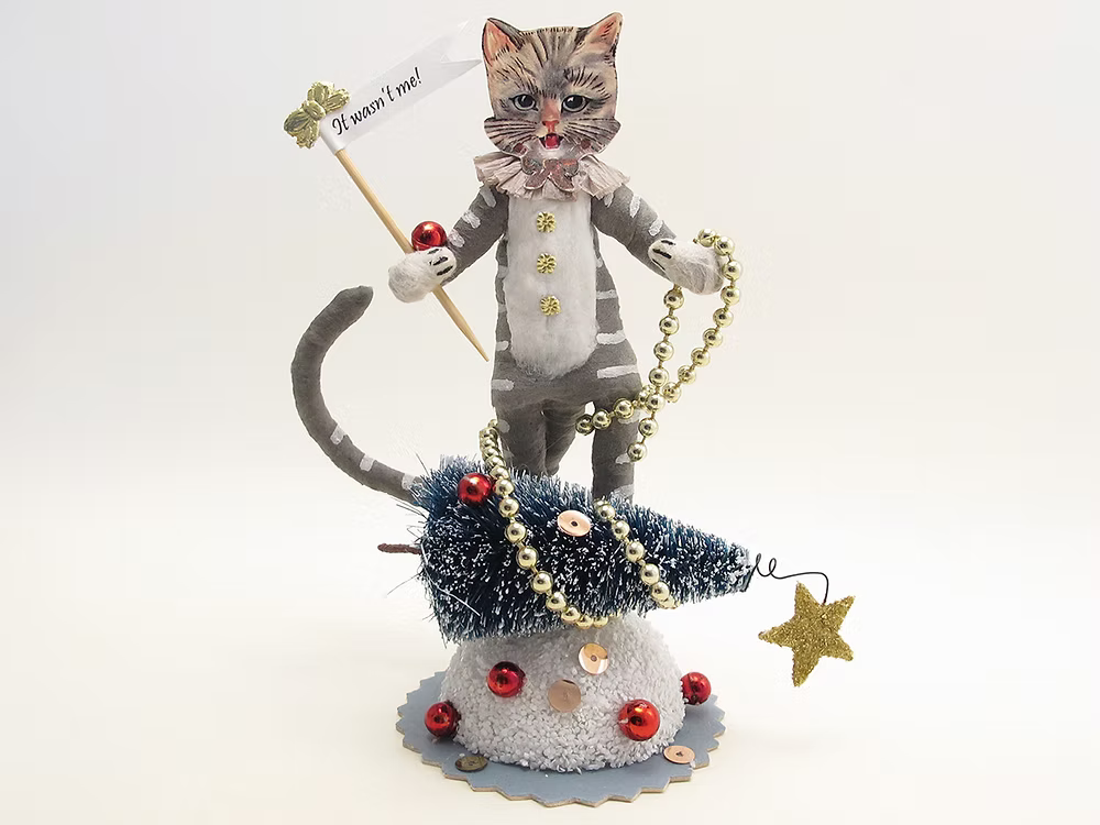 Christmas "Cat-astrophe" Figure | Vintage by Crystal Spun Cotton Ornament