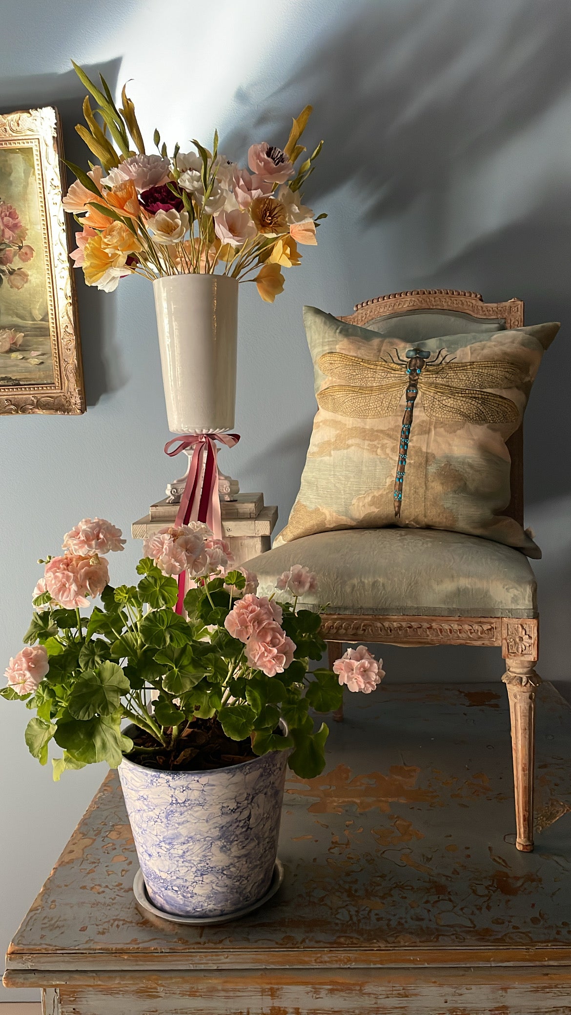 Dragonfly Over Clouds Sky Blue Cushion - John Derian