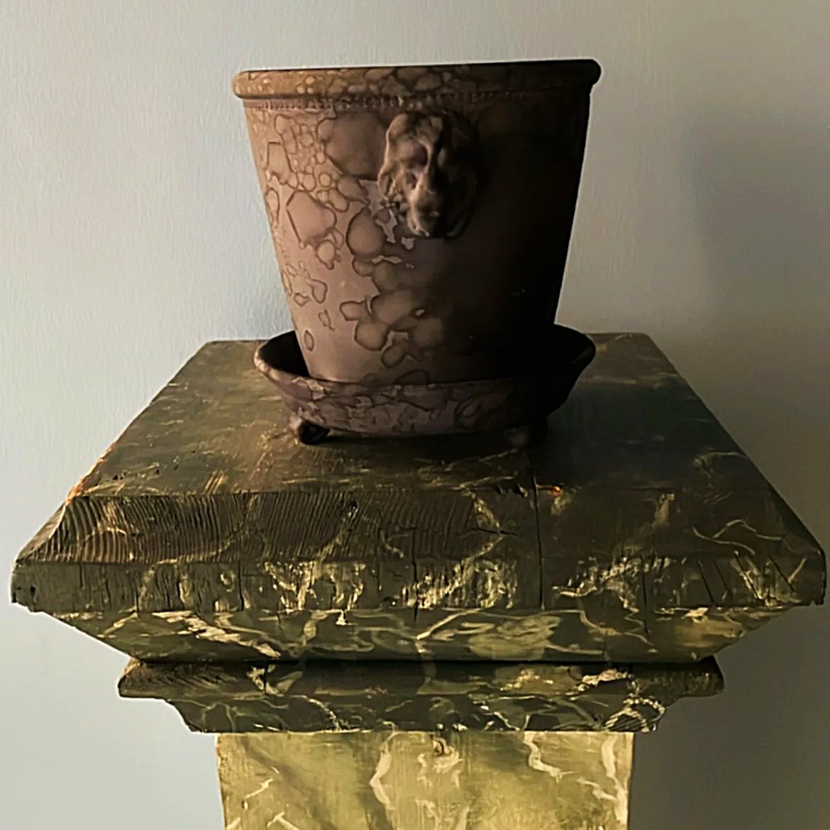 Grey Unglazed Lion Pot with Saucer on Legs | Handmade Erik Bendtsen Ceramics