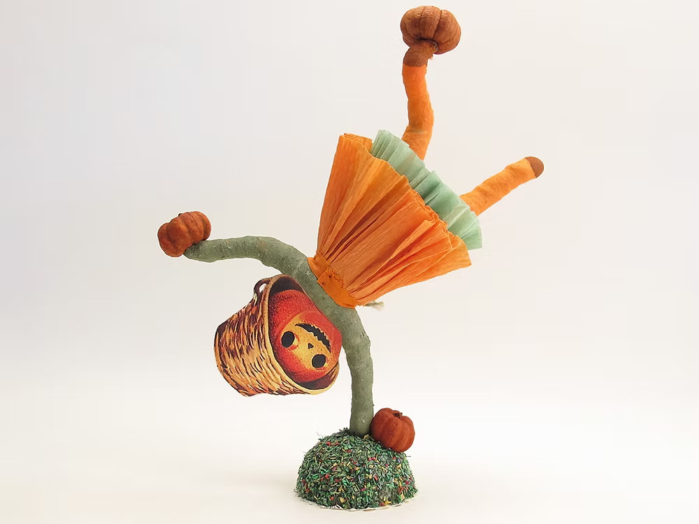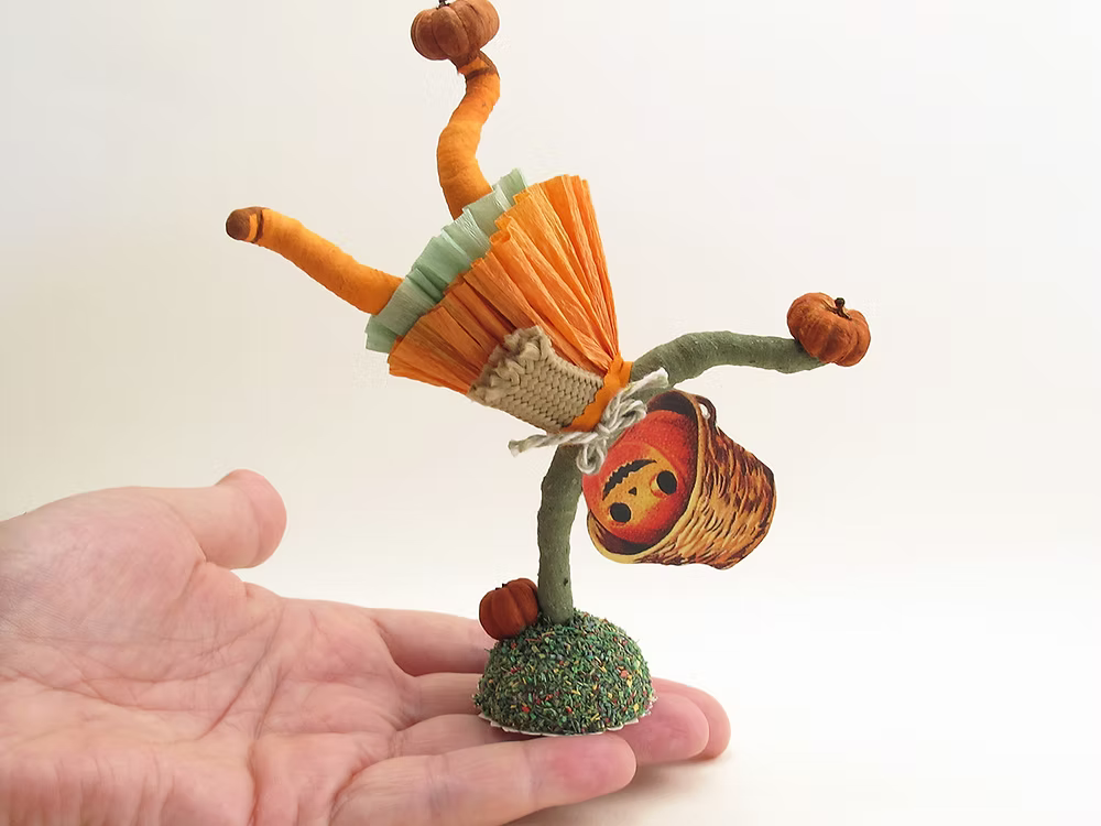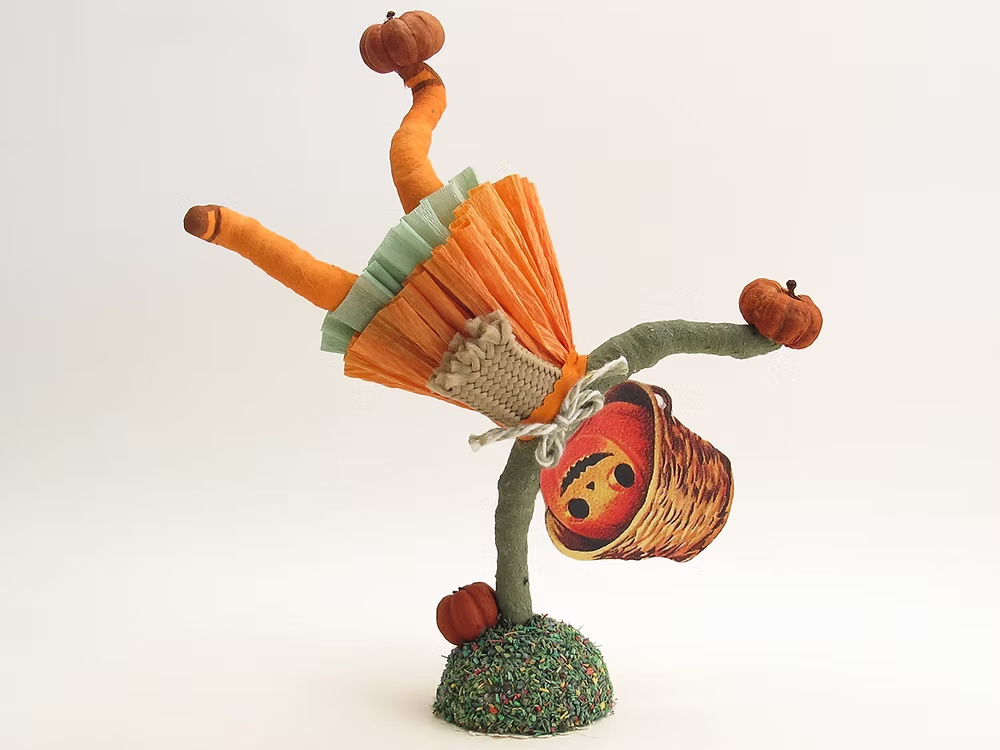 Handstand Pumpkin Gal Figure | Vintage by Crystal Spun Cotton Ornament
