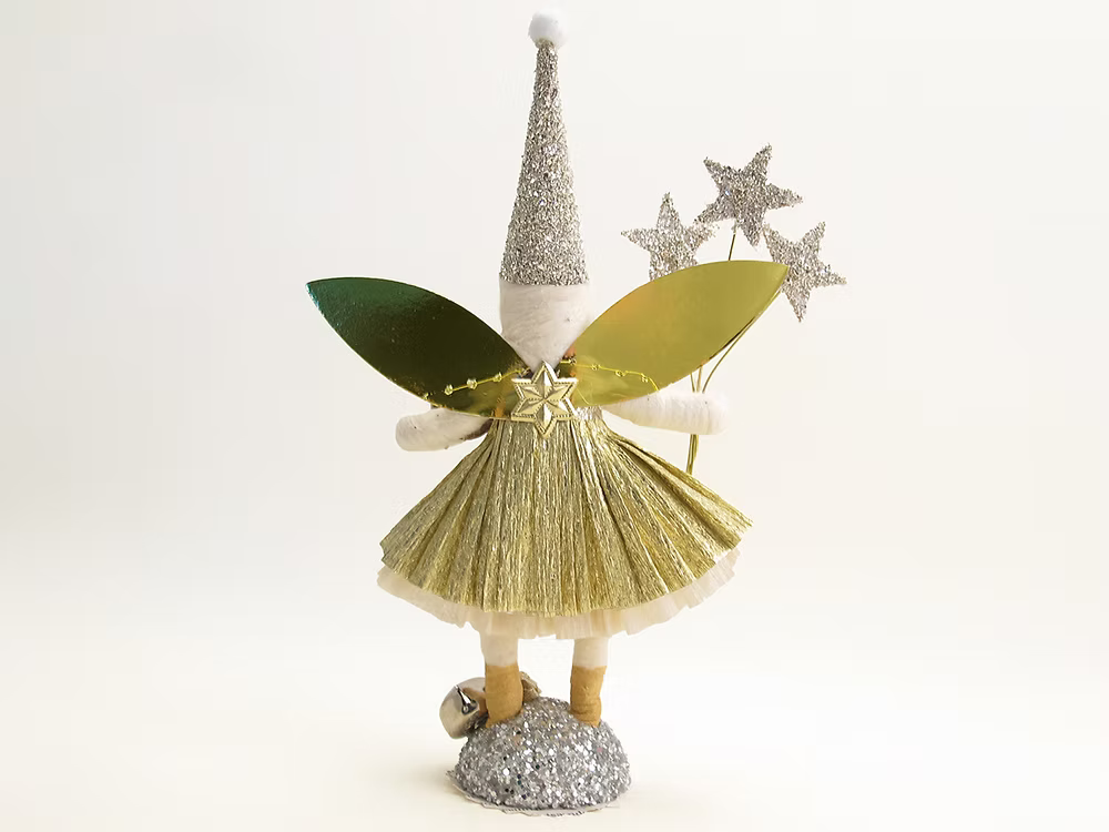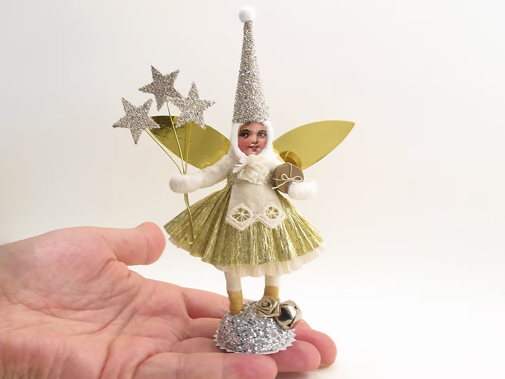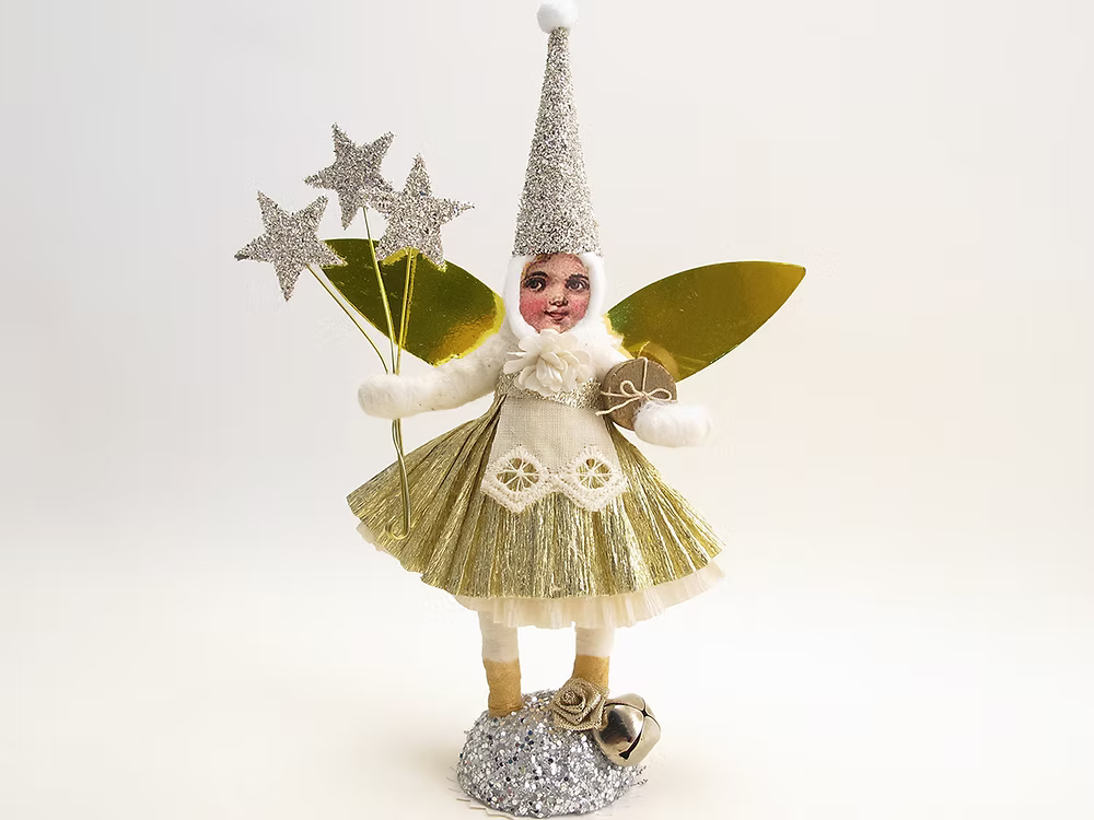 Magic Golden Fairy Figure | Vintage by Crystal Spun Cotton Ornament