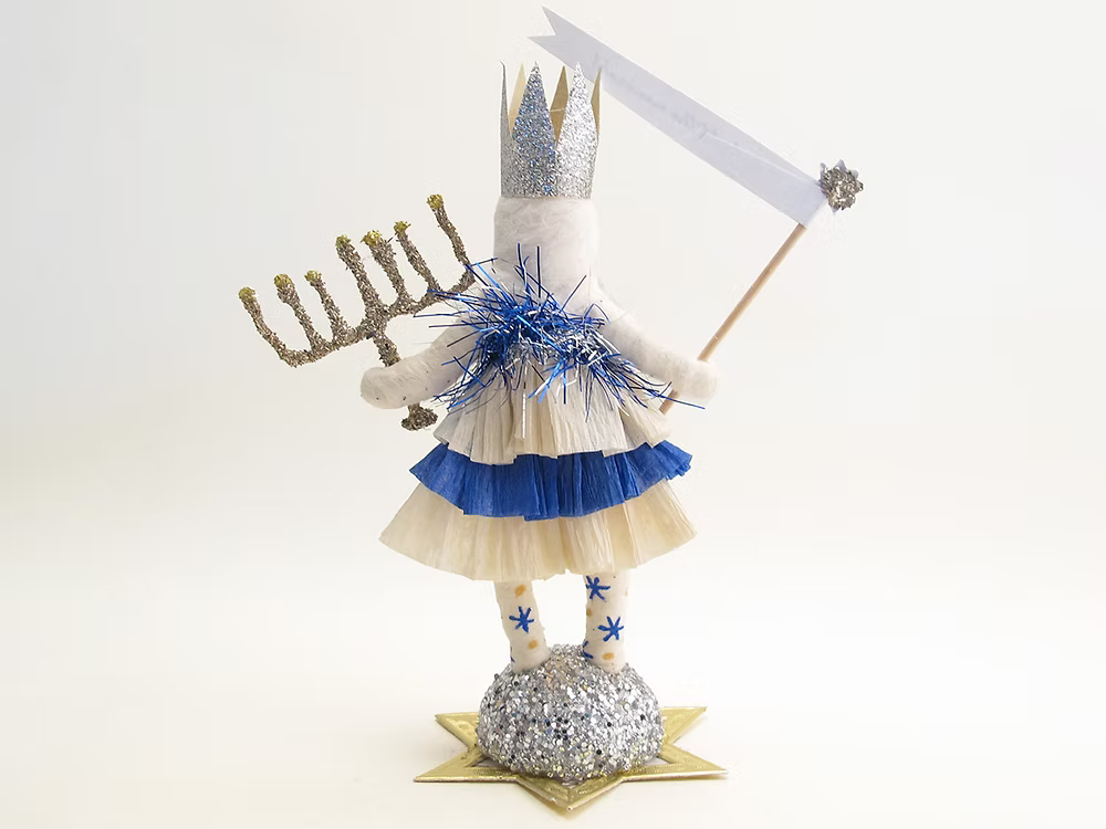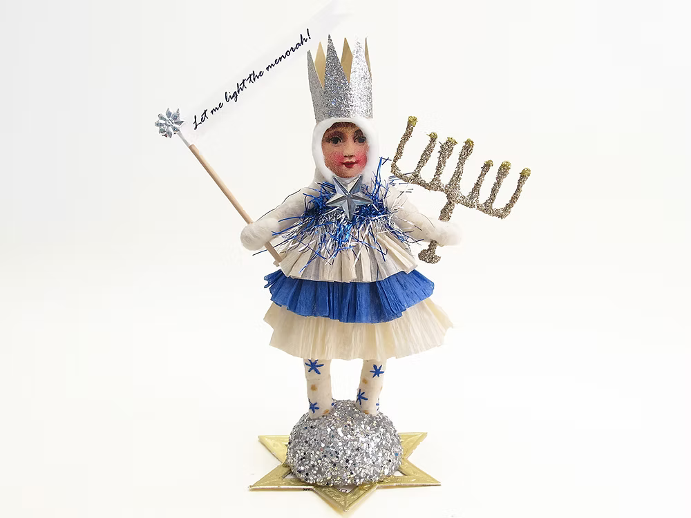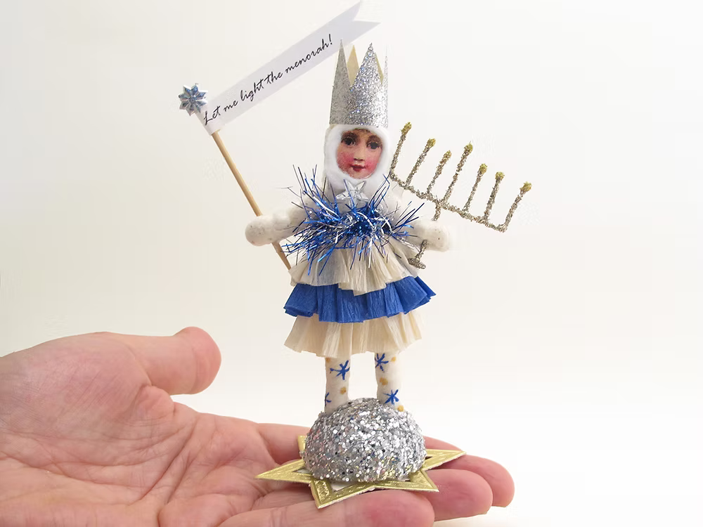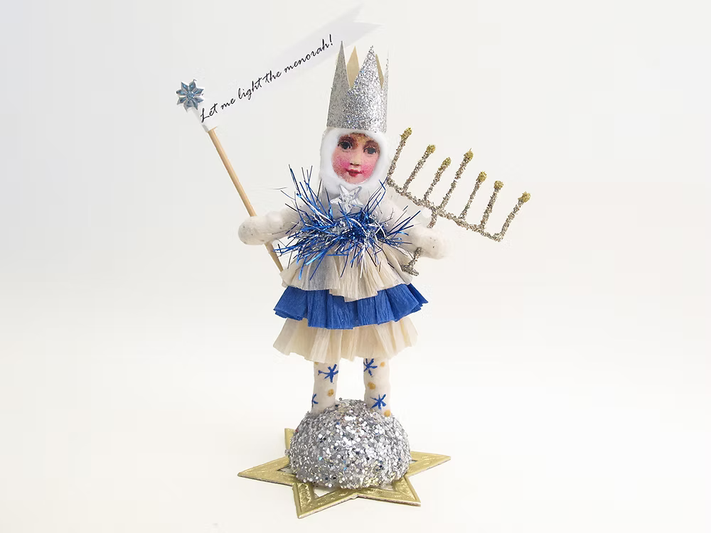 Menorah Hanukkah Girl Figure | Vintage by Crystal Spun Cotton Ornament