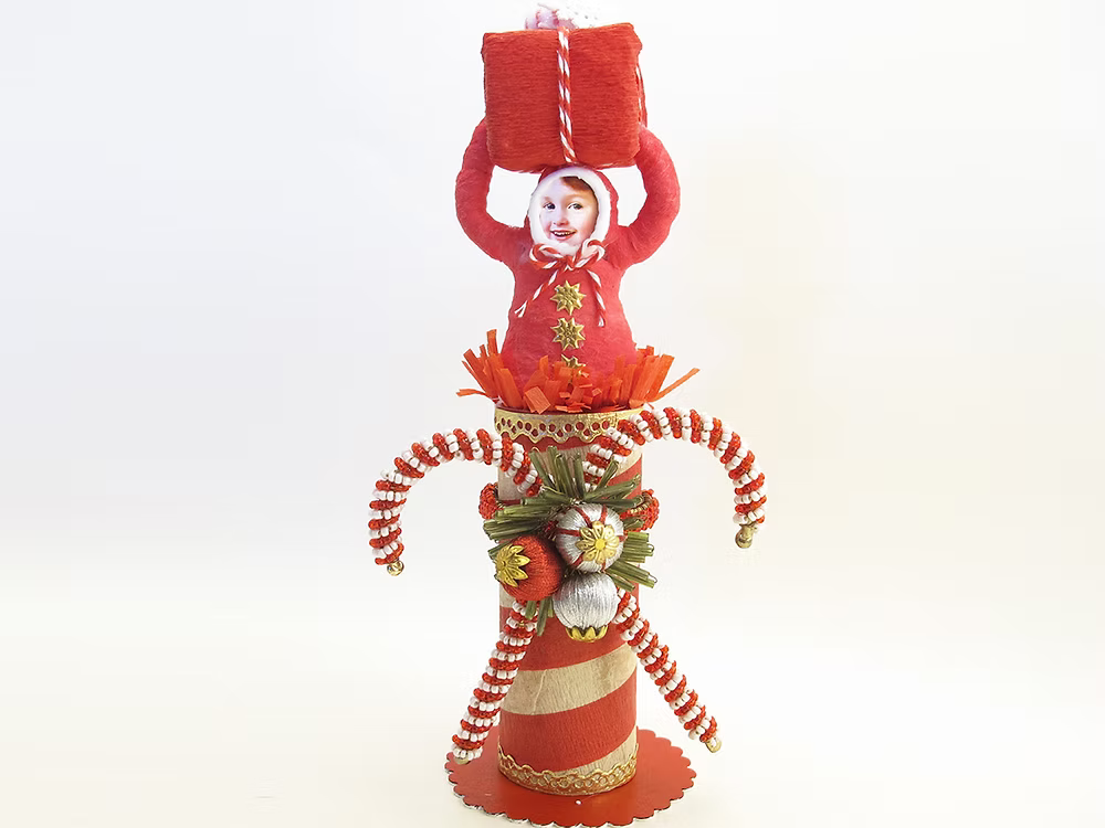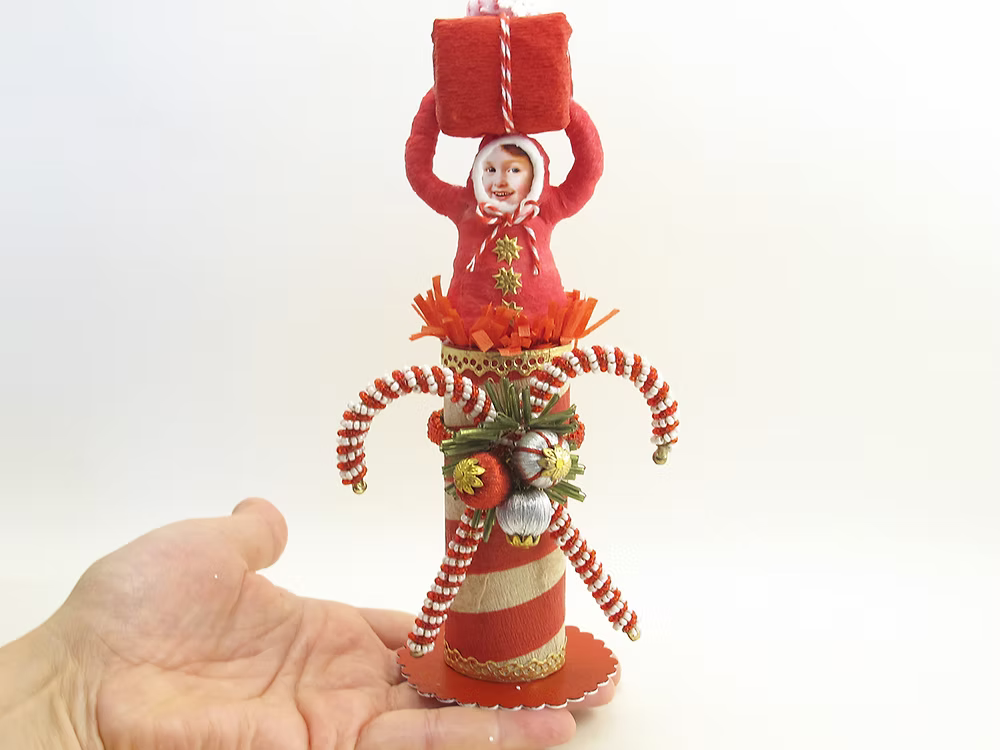 North Pole Present Surprise Figure | Vintage by Crystal Spun Cotton Ornament