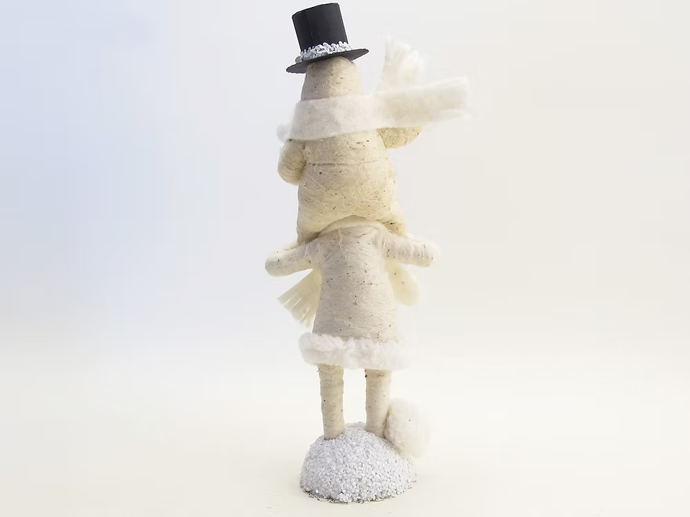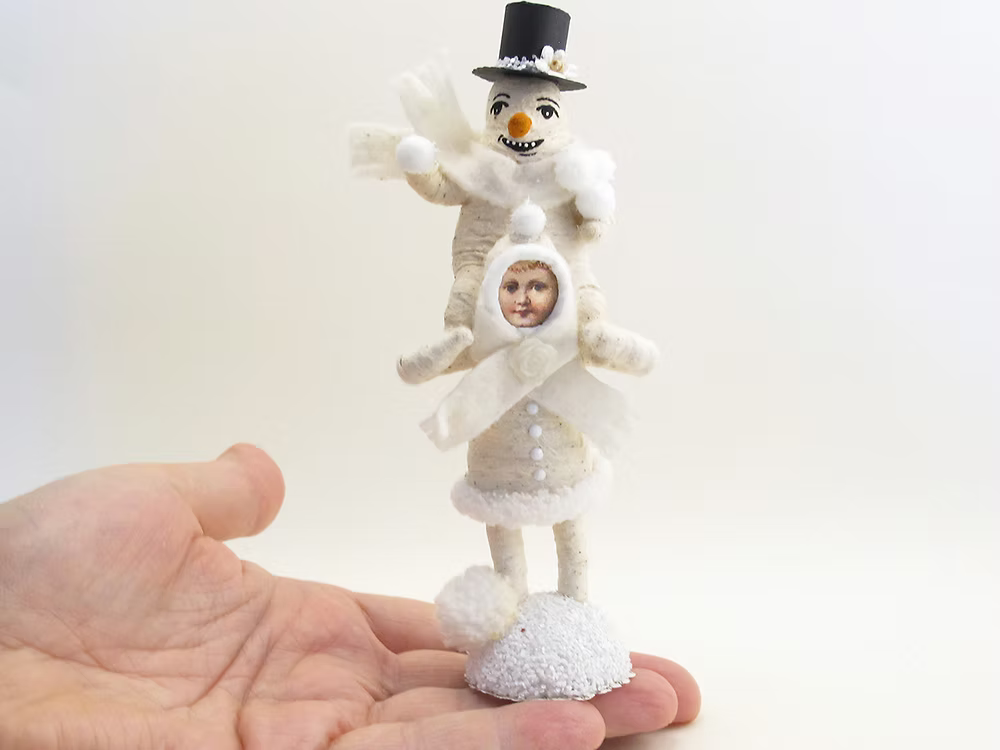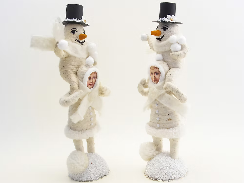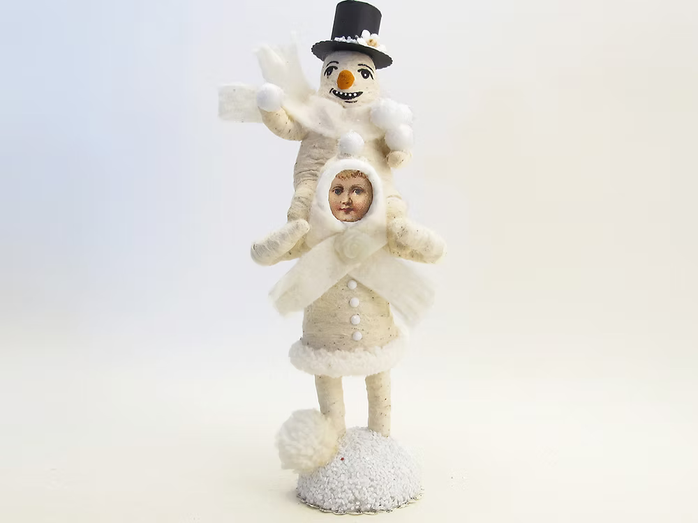 Piggy Back Snowman Figure | Vintage by Crystal Spun Cotton Ornament
