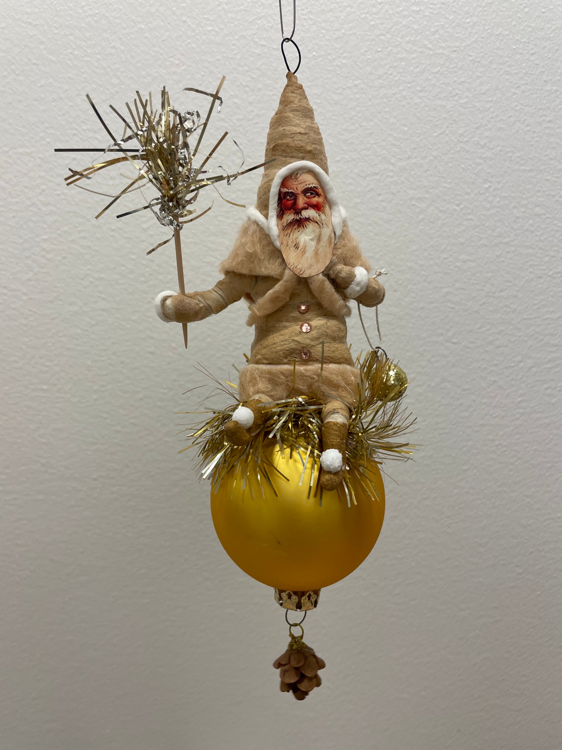 Santa on Glass Ball Ornament - Vintage Inspired Spun Cotton | Vintage by Crystal Spun Cotton Ornament