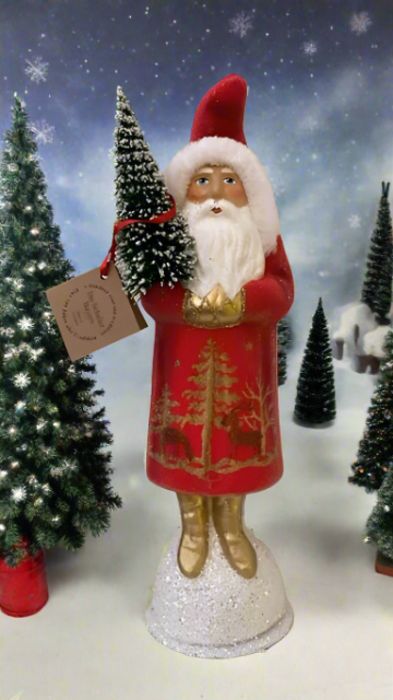 Santa no. 20 - Red Beaded Coat with Gold Trim and with Hand Painted Gold Tree Motif | Ino Schaller