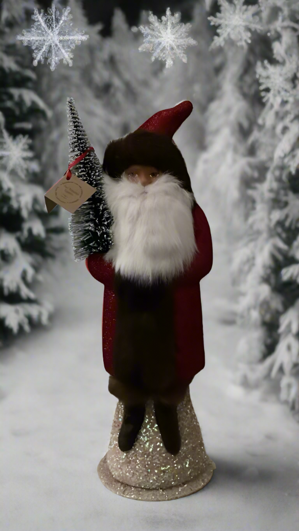 Santa no. 10 - Red Glitter with Brown Fur Trim | Ino Schaller