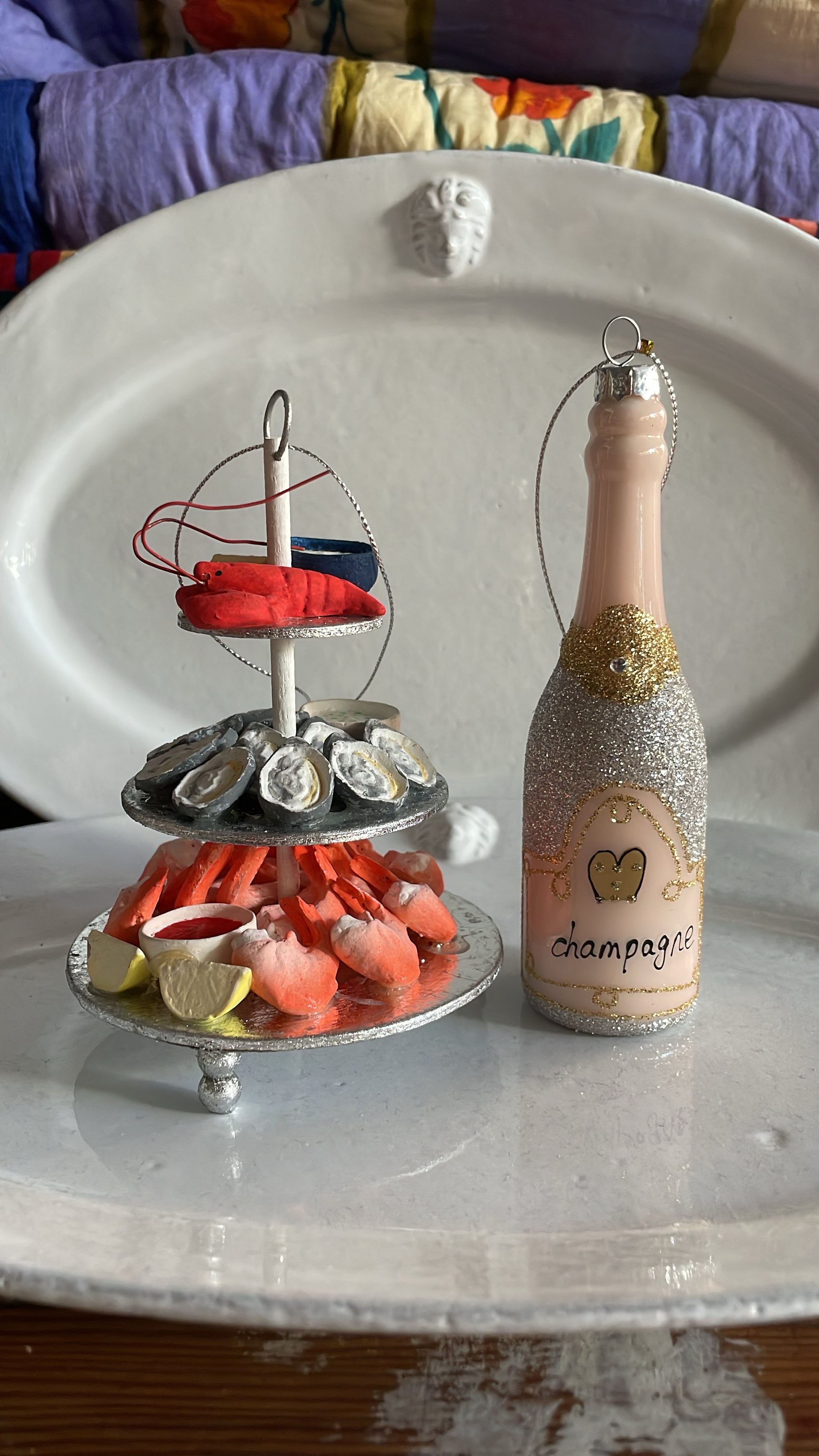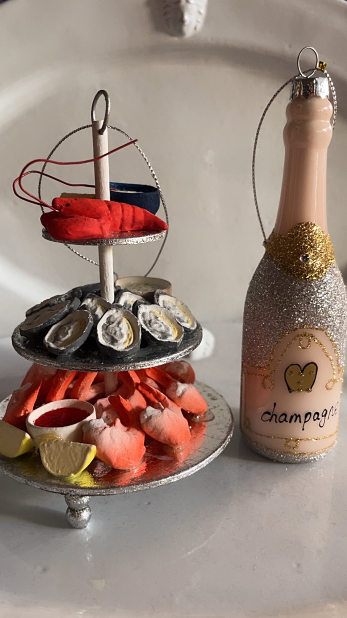 Because let's be honest, who wants a boring old Christmas ornament when you can have this delicious and uniquely designed seafood tower that's sure to impress your guests (if it lasts that long)! Bring a touch of humor and style to your holiday celebrations.