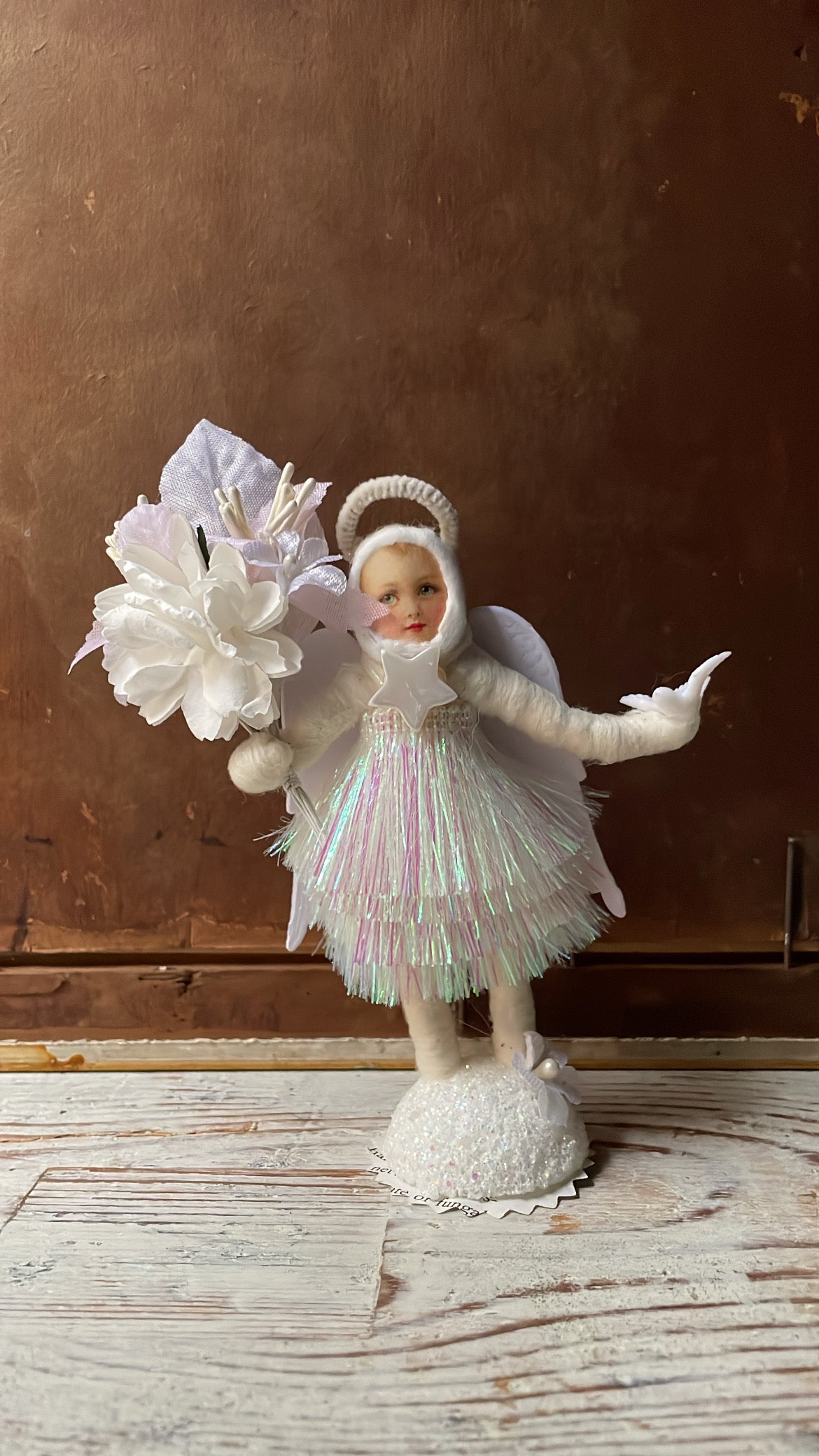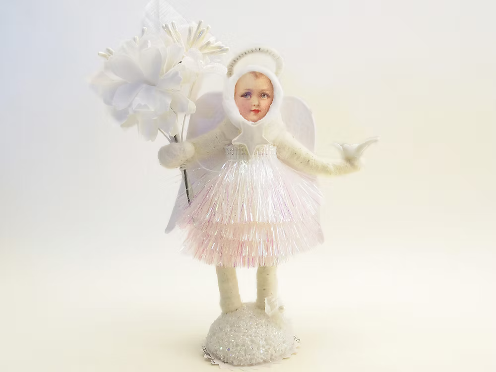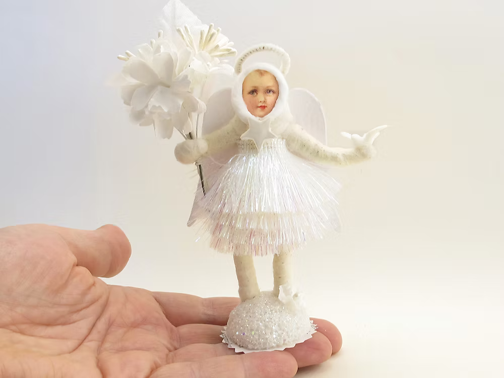 Shimmering Angel Figure | Vintage by Crystal Spun Cotton Ornament