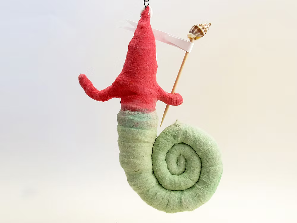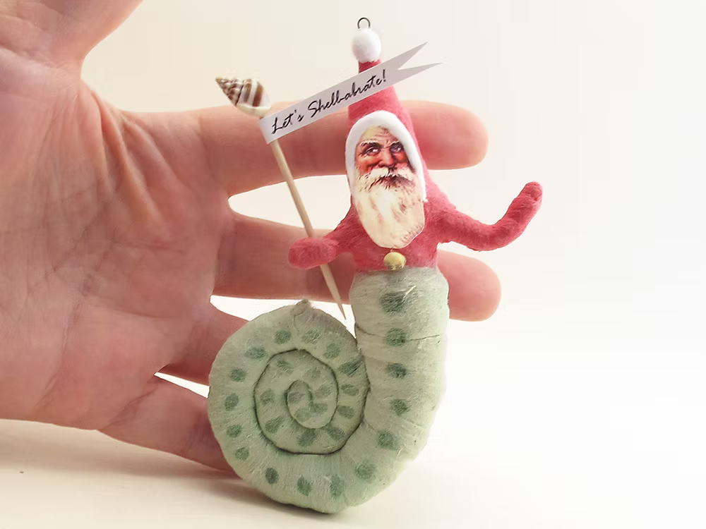 Snail Santa Ornament | Vintage by Crystal Spun Cotton Ornament