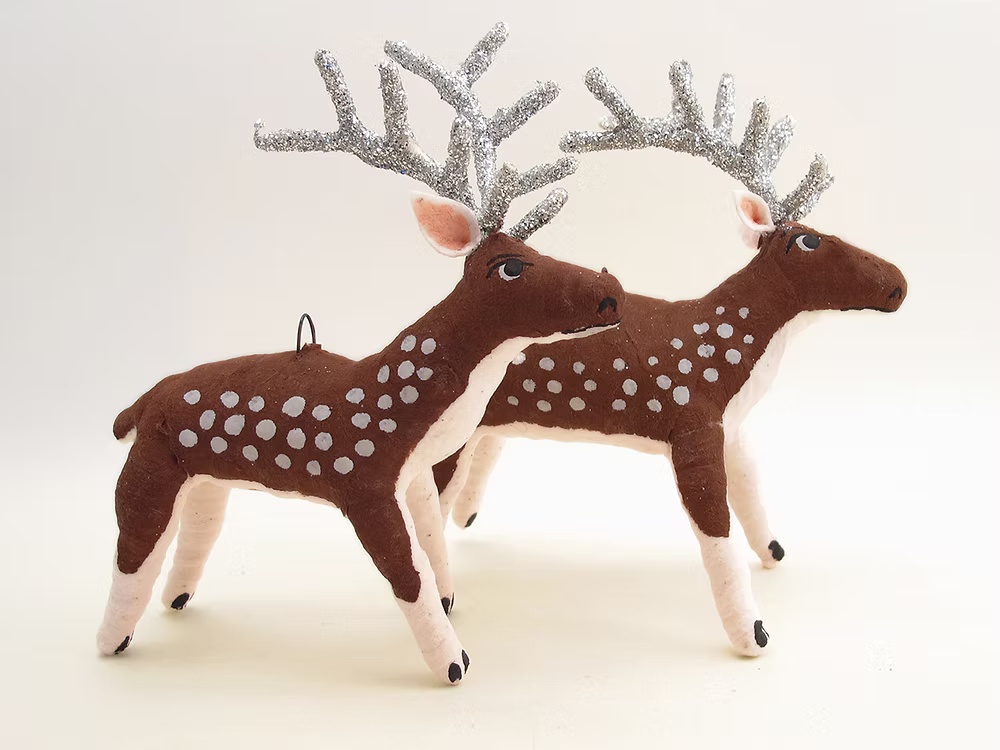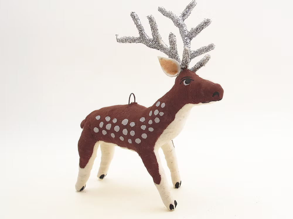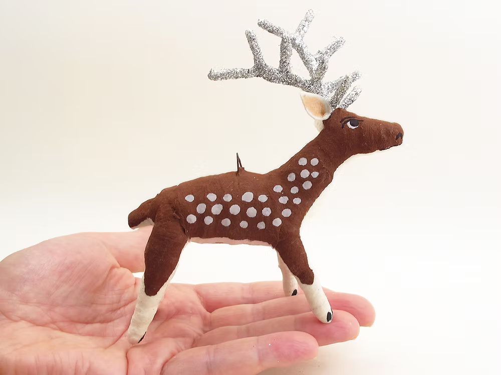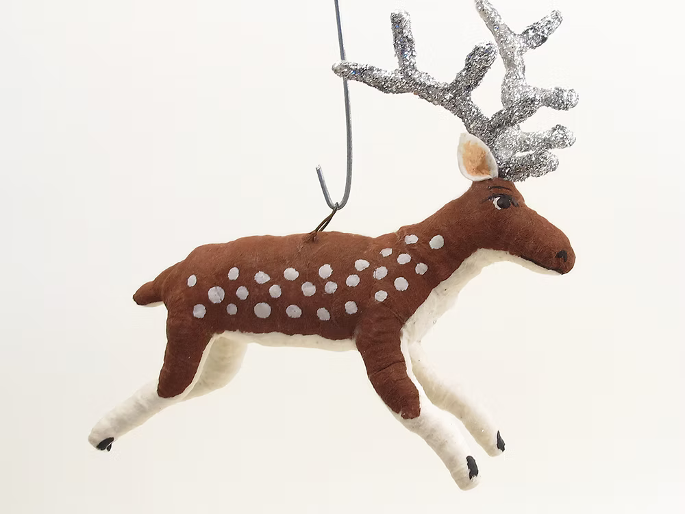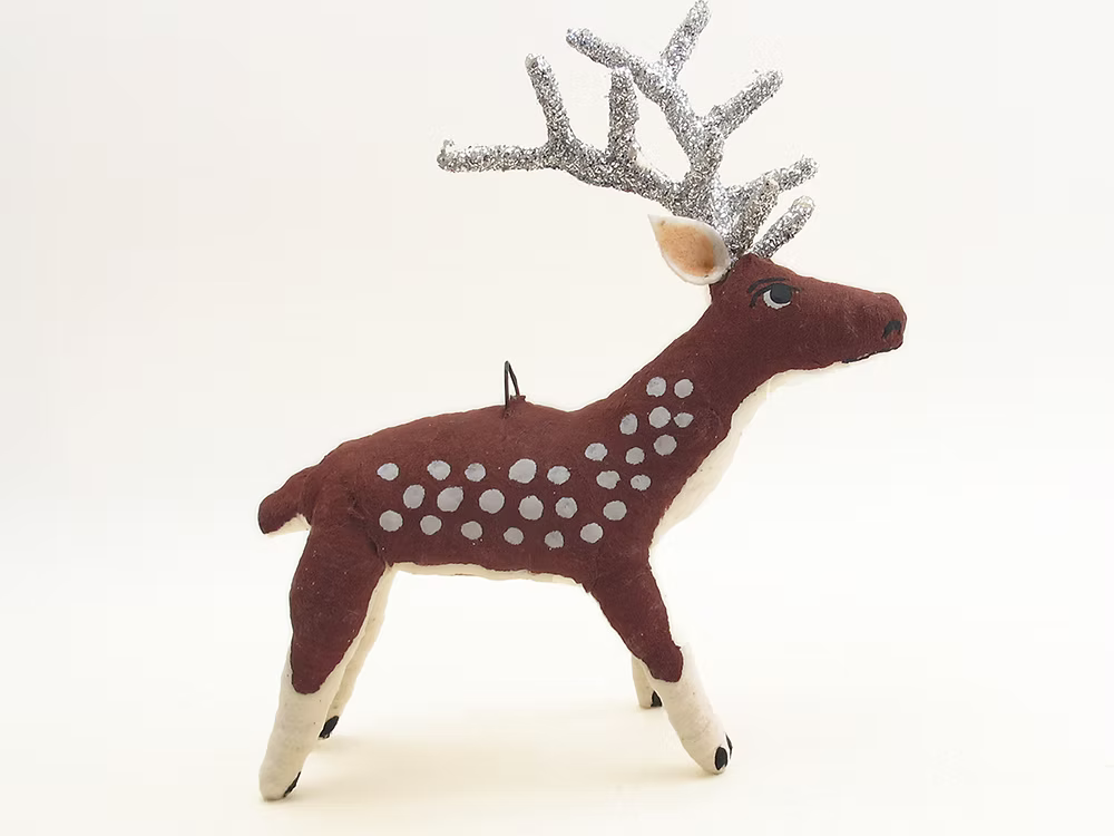 Spotted Reindeer Ornament/Figure | Vintage by Crystal Spun Cotton Ornament