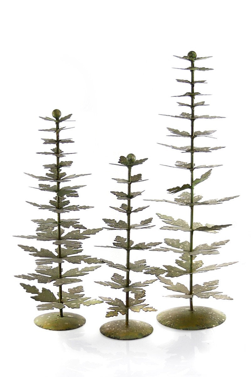 Crafted in tin with a rustic patina finish, these sculptural conifer trees bring a touch of woodland charm to the holiday season. Perfect as standalone accents or grouped together, they add texture and depth to your Christmas décor.