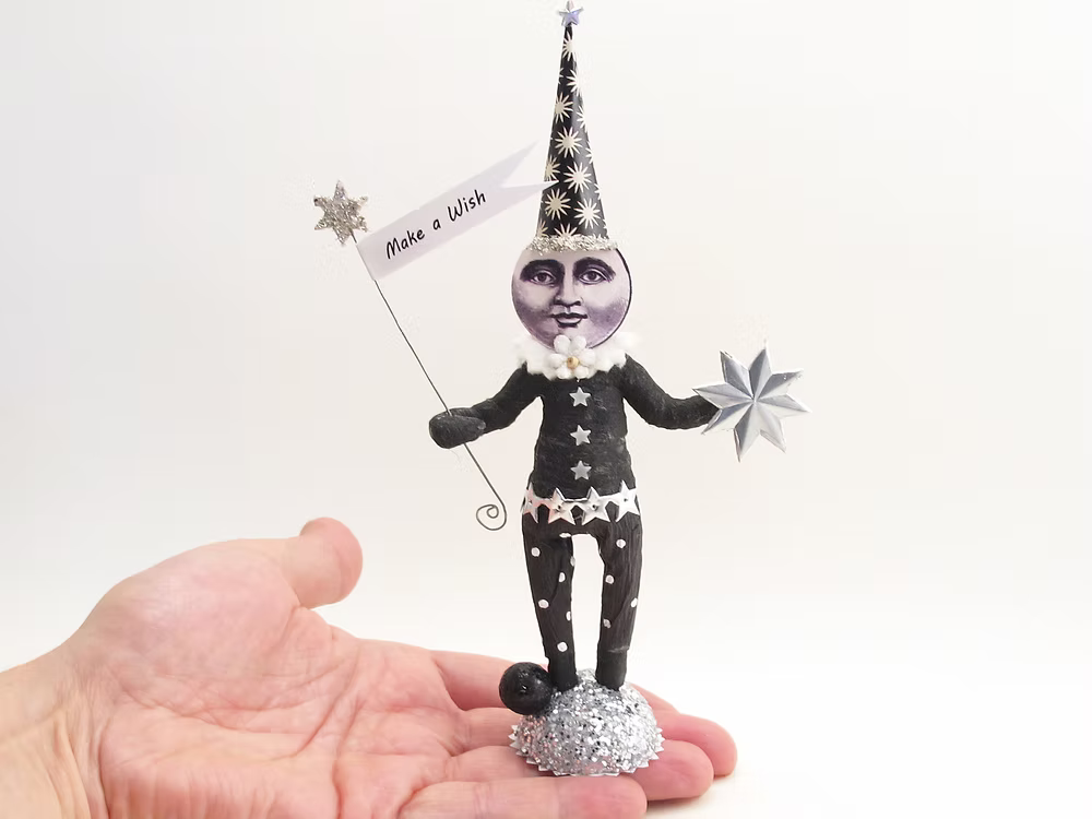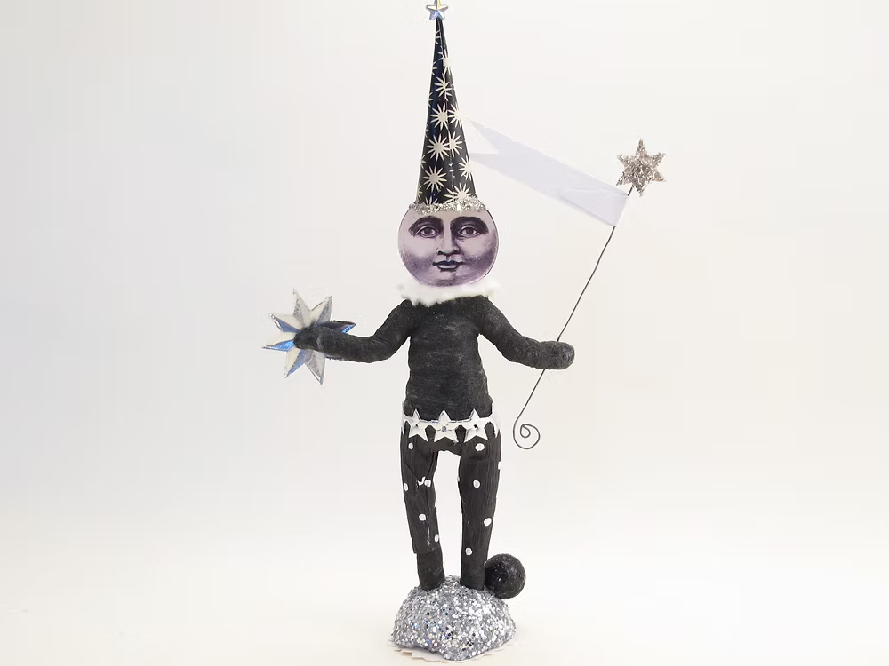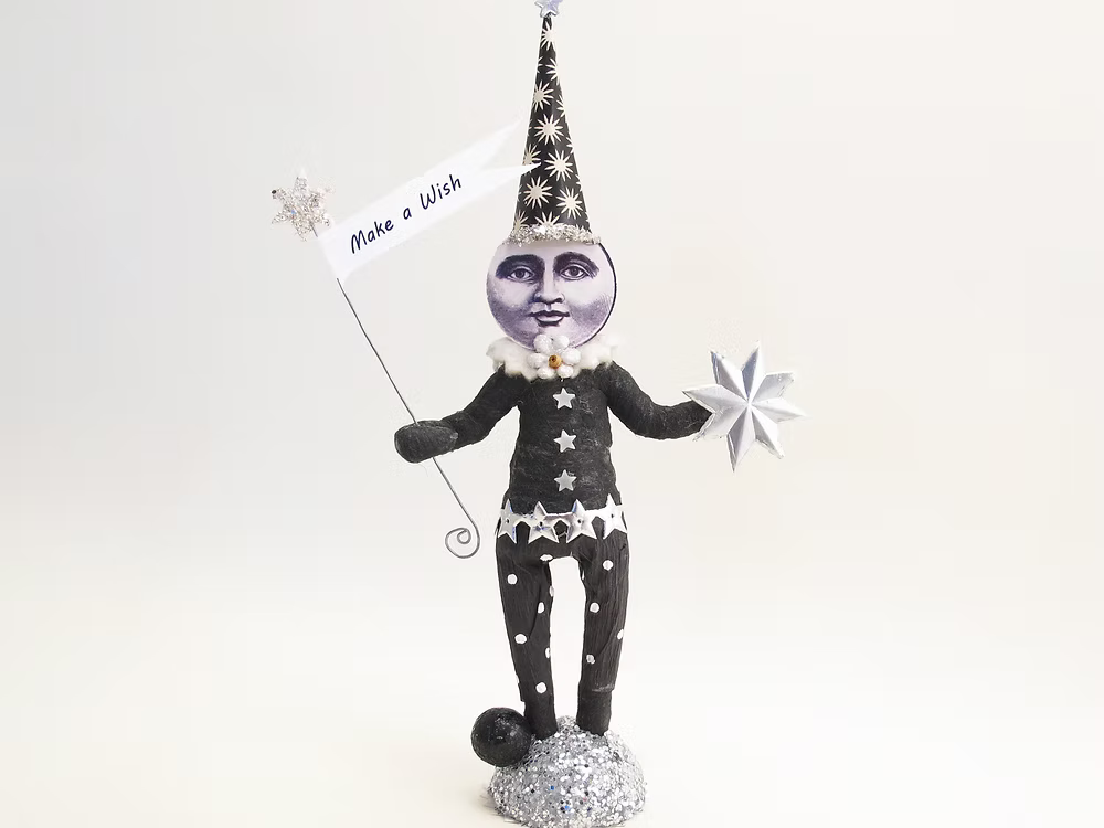 Wishing Moon Figure | Vintage by Crystal Spun Cotton Ornament